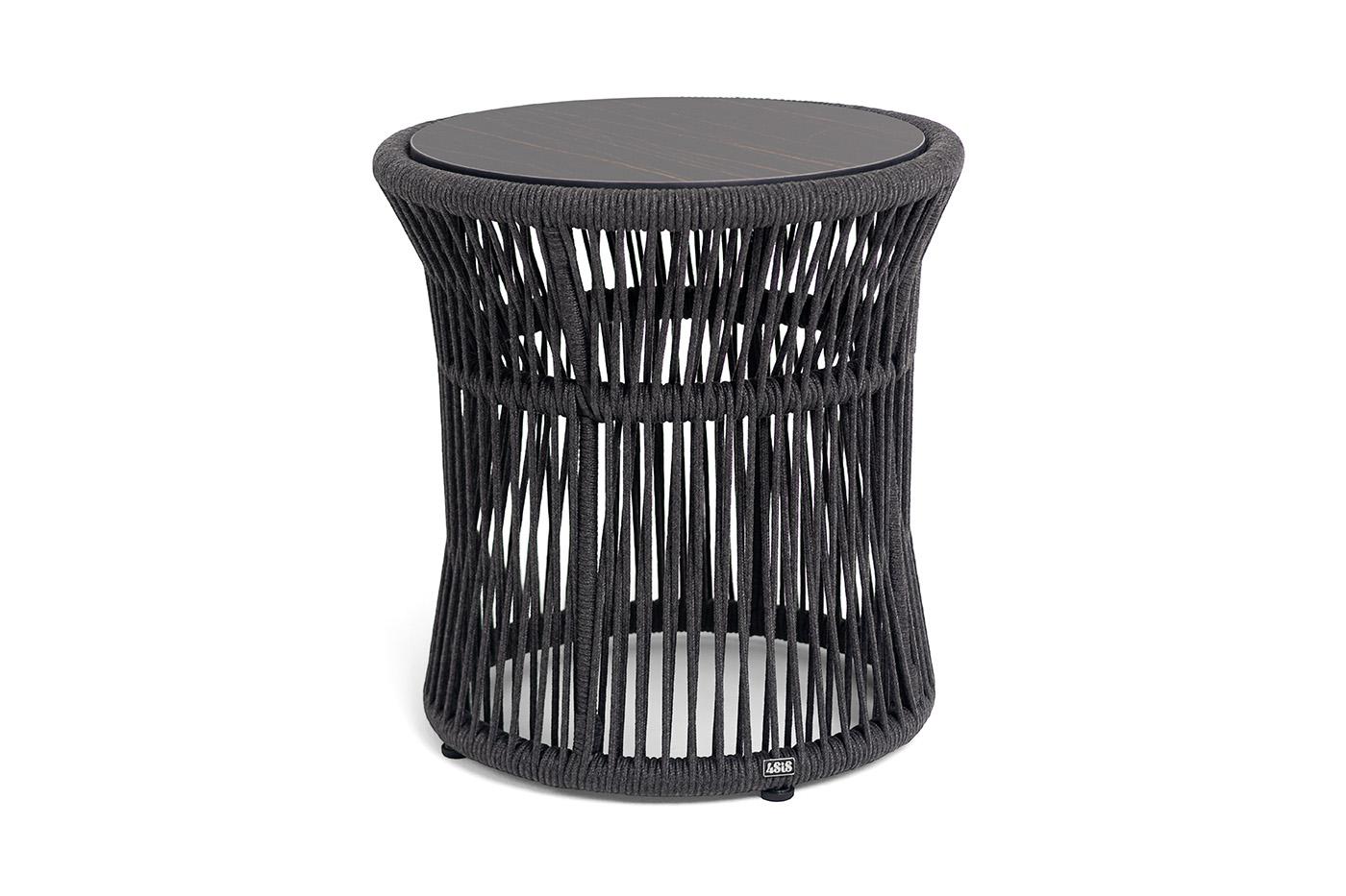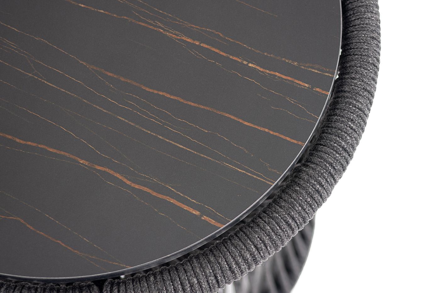 Стол журнальный 4SIS "Романо" журнальный стол из HPL круглый Ø45 H47, каркас из алюминия черный муар, цвет "черный мрамор", роуп темно серый круглый арт. J689-5-D45H47-ROM-Al-RAL9005Mua-D-grey-4sis