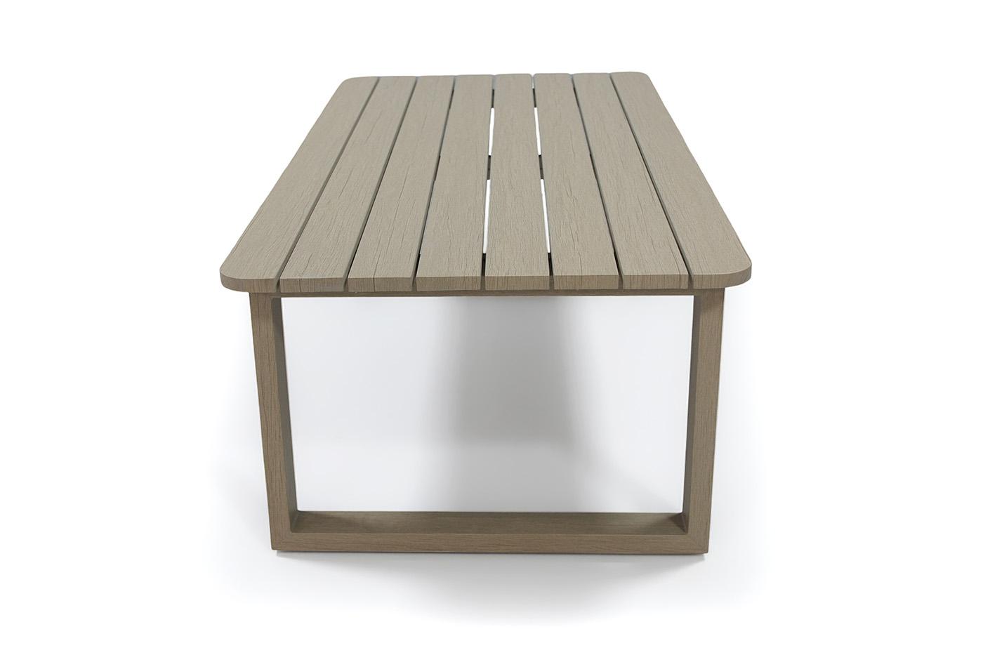Элегантный журнальный столик «Прато», выполнен из прочного алюминия в стильном цвете под холодное бежевое дерево. Столик станет не только функциональным элементом интерьера, но и изысканным акцентом, добавляющим современности и утонченности. Благодаря алюминиевой конструкции, он легок, долговечен и прост в уходе, что делает его практичным выбором для вашего дома. Размеры: 1400×650×400 мм - идеально подходят для создания уютной зоны отдыха.