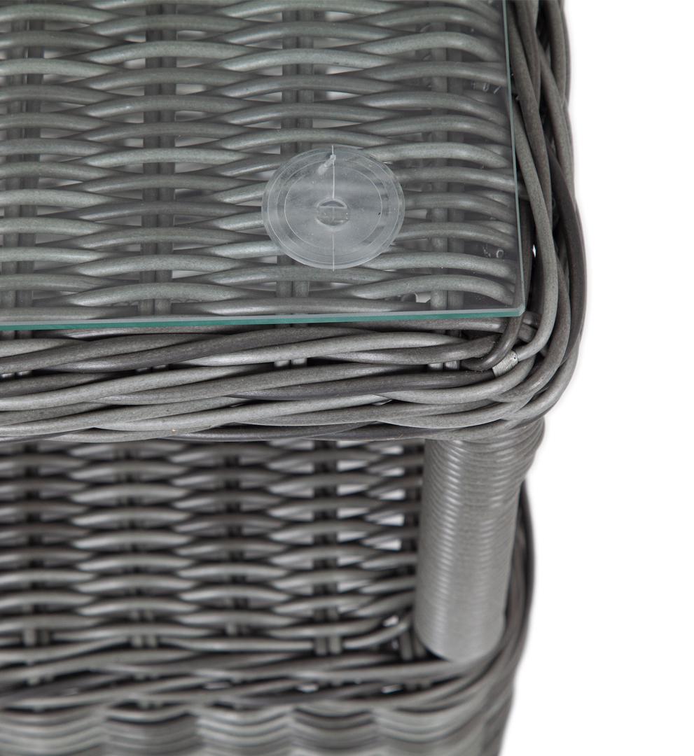 Кофейный стол из искусственного ротанга «Форио» отличается компактными размерами, ширина и глубина всего 450 мм, а высота 520 мм, что позволяет эксплуатировать его в ограниченном пространстве. Модель состоит из каркаса, обвитого вручную ротангом графитового цвета. Данный образец обладает ударопрочной стеклянной 5 мм столешницей, конструкцией предусмотрена полочка для принадлежностей.
