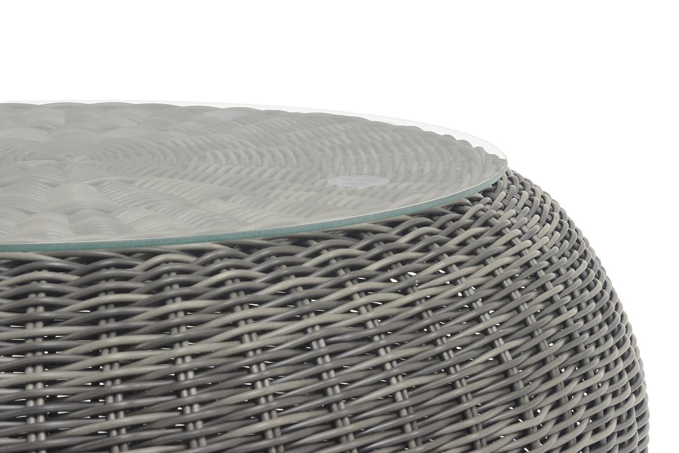 Журнальный столик «Барселона» используется как в комплекте, так и в качестве отдельного предмета для сада, открытой террасы или балкона. Каркас столика изготовлен из алюминия, вручную оплетенного круглым искусственным ротангом. Столешница из закаленного стекла толщиной 5 мм. Благодаря износостойким материалам, стол пригоден для использования на улице при любой погоде и не требует специальных условий хранения. Плетеный столик представлен в графитовом цвете. Размеры стола: 900×900×390 мм.