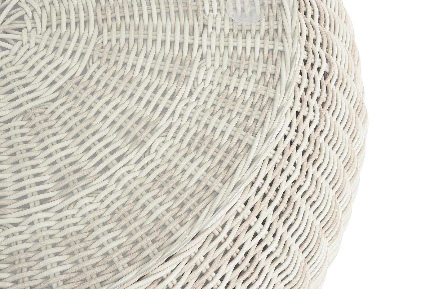 Журнальный столик «Барселона» используется как в комплекте, так и в качестве отдельного предмета для сада, открытой террасы или балкона. Каркас столика изготовлен из алюминия, вручную оплетенного круглым искусственным ротангом. Столешница из закаленного стекла толщиной 5 мм. Благодаря износостойким материалам, стол пригоден для использования на улице при любой погоде и не требует специальных условий хранения. Плетеный столик представлен в бежевом цвете. Размеры стола: 900×900×390 мм