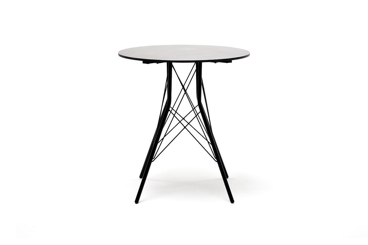 Интерьерный круглый стол «Конте» в современном стиле лофт. Каркас изготовлен из стали, окрашенной в матовый черный цвет. В качестве столешницы использован высококачественный монолитный компакт-пластика HPL, толщиной 12 мм. Цвет поверхности – «серый гранит». Диаметр изделия - 700 мм, высота – 750 мм. Для обустройства обеденной группы стол можно сочетать с дизайнерскими стульями и креслами из нашего ассортимента.