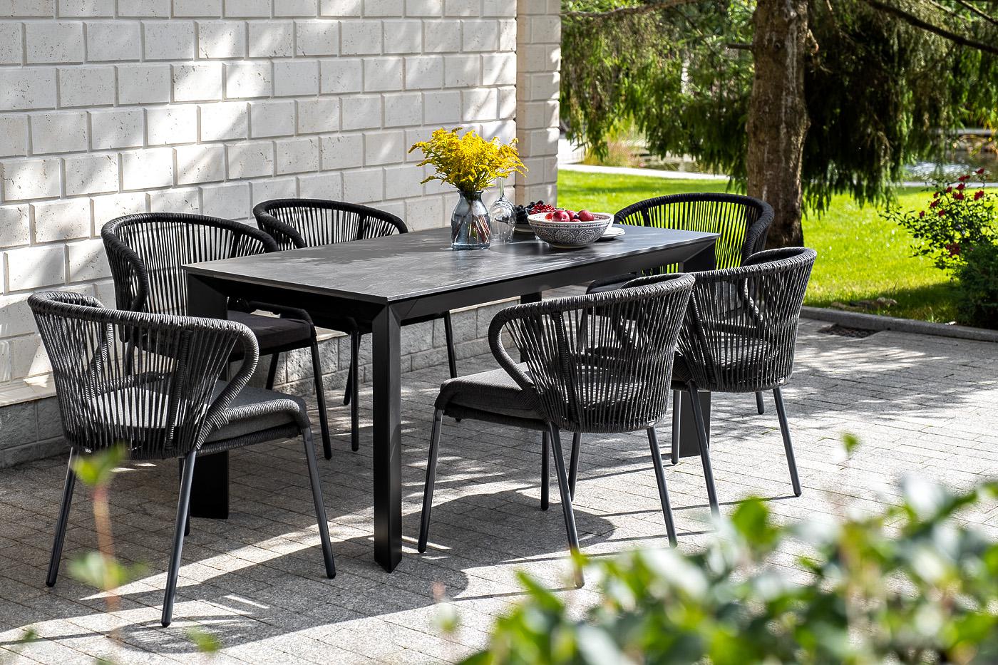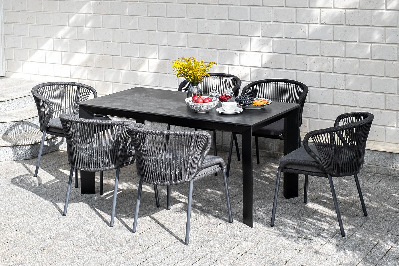 Интерьерный обеденный стол «Венето» для организации столовой зоны. Столешница выполнена из современного высококачественного монолитного компакт-пластик HPL, толщиной 12 мм в цвете «серый гранит». Материал устойчив к высоким температурам, попаданию влаги и может использоваться как в помещении, так и на открытом пространстве. Подстолье изготовлено из крашеного алюминия черного цвета. Размеры: 1600×800×750 мм. Доступные варианты размеров столов «Венето»: 900×900×750 мм. 1400×800×750 мм. 1800×900×750 мм. 2000×1000×750 мм. 2400×1000×750 мм. Для обустройства обеденной зоны стол можно дополнить креслами или стульями из нашего ассортимента.