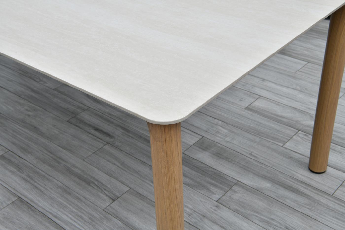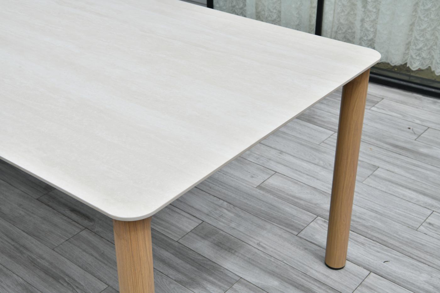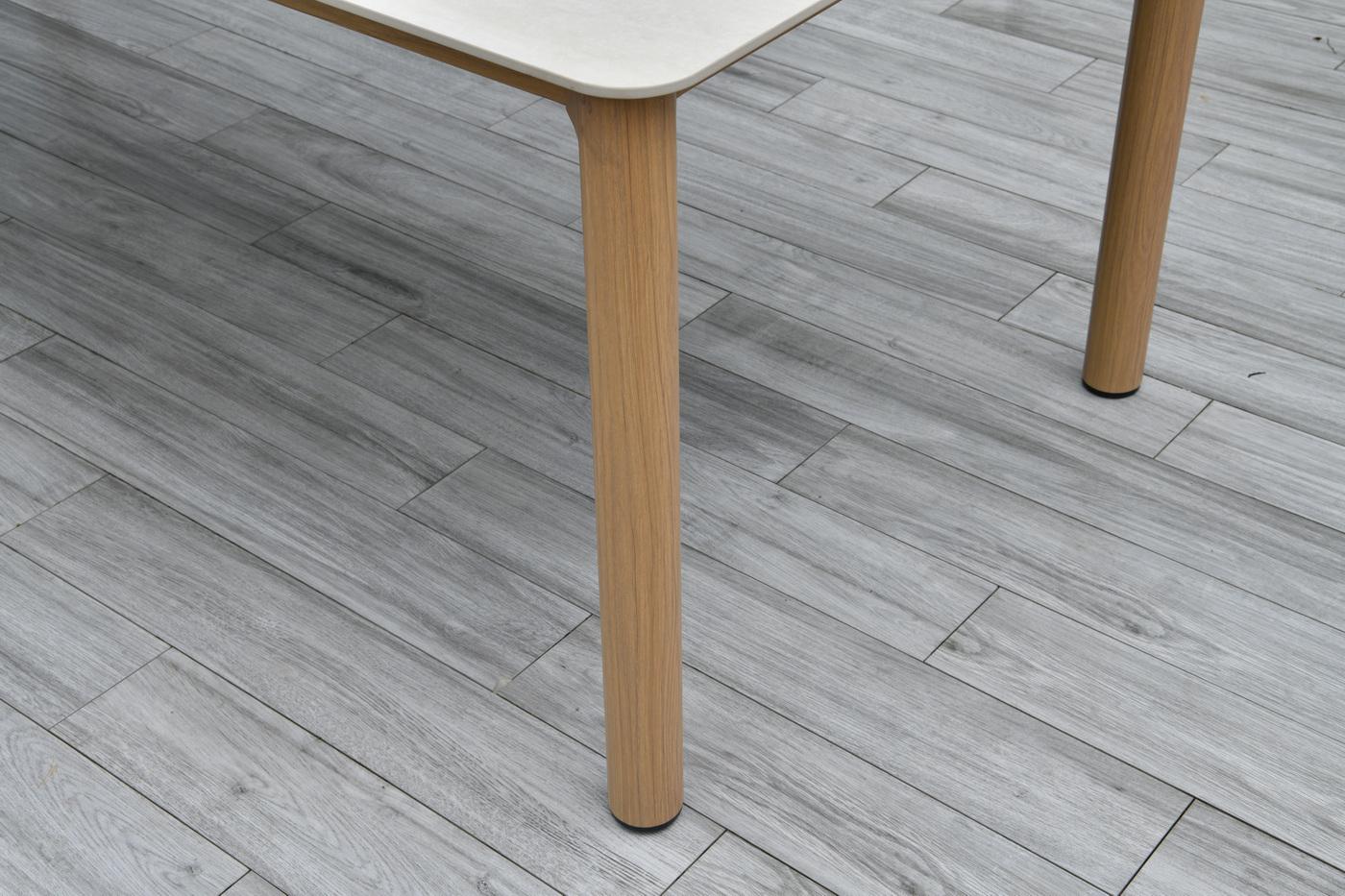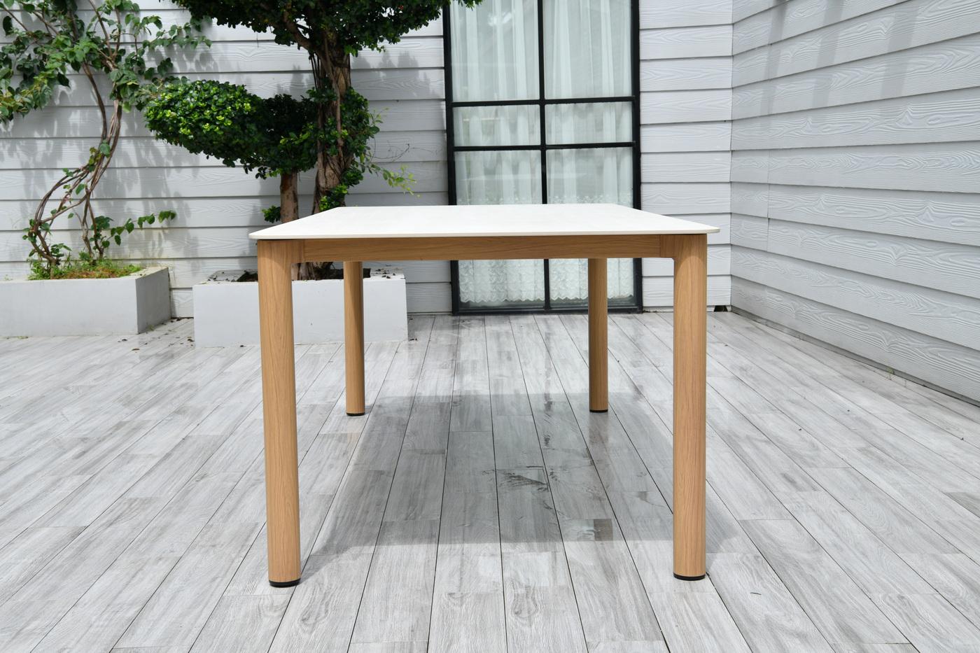 Обеденный стол «Кейптаун» воплощает принципы современного дизайна: лёгкость, функциональность и надёжность. Прочный каркас из алюминия, стилизованный под дерево, дополнен столешницей из искусственного камня: такая комбинация гарантирует долговечность, практичность и стильный внешний вид. Размеры 2200×1000×760 мм позволяют комфортно разместить 8-10 человек — идеально для семейных обедов и праздничных застолий. Модель станет центральным элементом столовой зоны, подойдёт для дома, дачи, веран