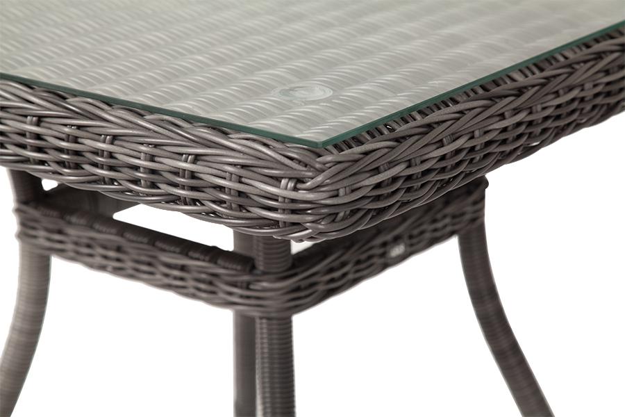 Стол из искусственного ротанга «Айриш» разработан для всесезонной эксплуатации на улице. Благодаря столешнице из ударопрочного стекла толщиной 5 мм, можно не опасаясь ставить горячую посуду. Каркас изготовлен из прочного алюминия, оплетенного ротангом графитового цвета. Размеры 900×900×750 мм, которые позволяют разместить компанию из четырех человек.
