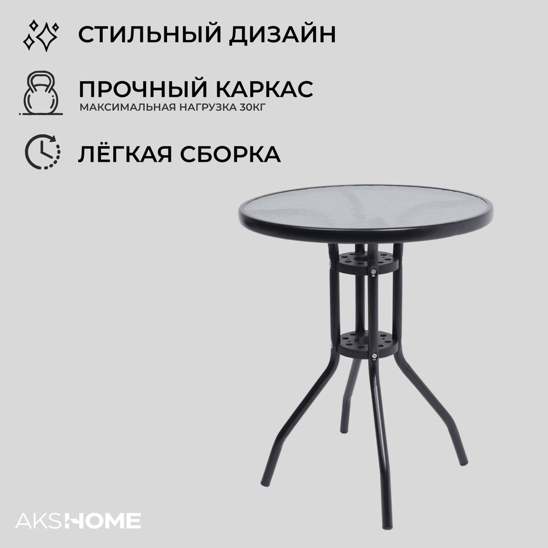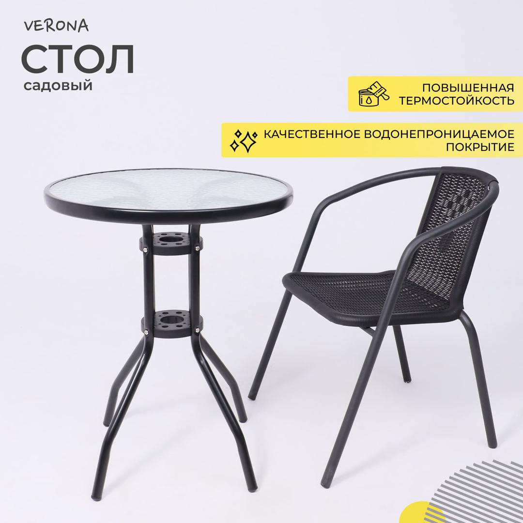 Стол AksHome Стол садовый VERONA, 60*73, сталь-черная/закаленное стекло 5мм арт. ZN-173133