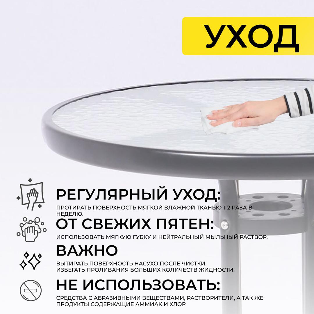 Наименование: Стол садовый VERONA, 60*73, сталь-черная/закаленное стекло 5мм