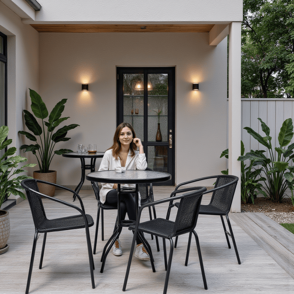 Наименование: Стол садовый VERONA, 80*73, сталь-черная/закаленное стекло 5мм