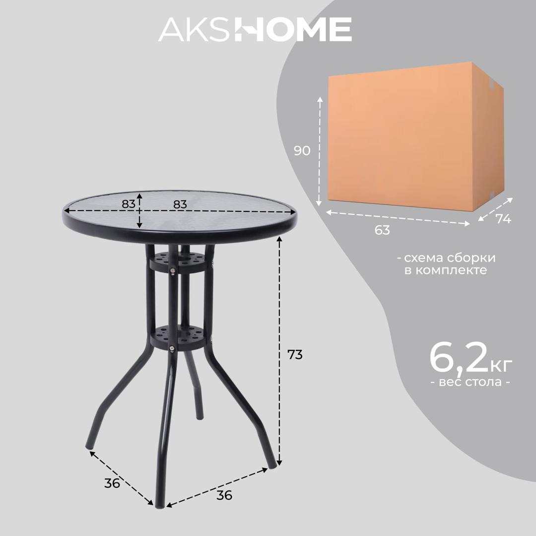 Стол AksHome Стол садовый VERONA, 80*73, сталь-черная/закаленное стекло 5мм арт. ZN-173134