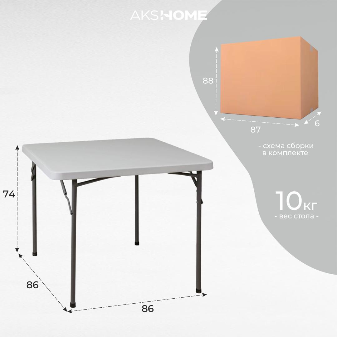 Стол AksHome Стол садовый складной, белый, hdpe-пластик, квадратный арт. ZN-381538