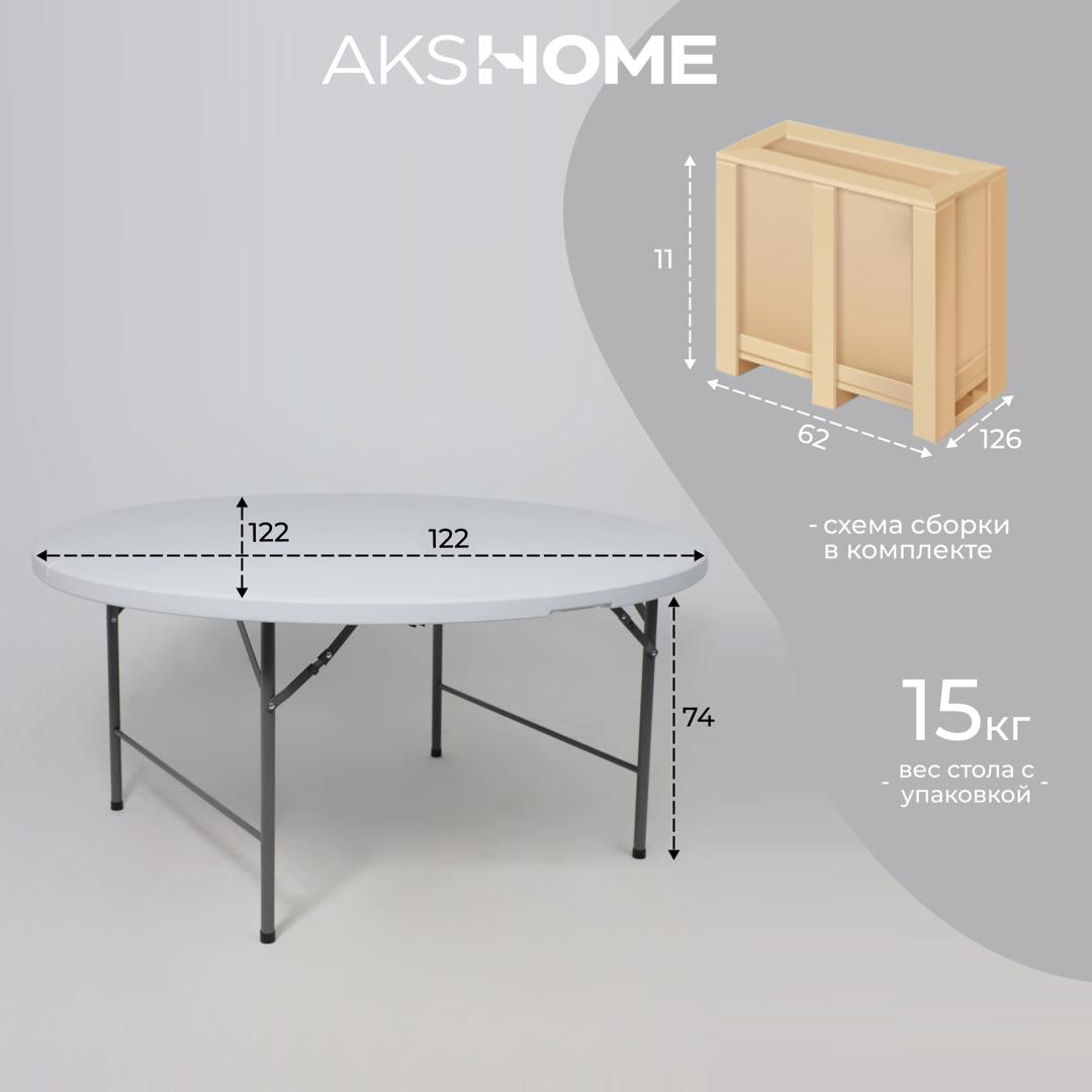 Стол AksHome Стол садовый складной, белый, hdpe-пластик, круглый арт. ZN-381539