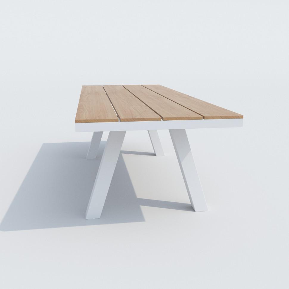 Материалы: каркас - всесезонный алюминий с порошковым напылением, столешница - поливуд (древесно-полимерный композит) Габариты: Д 220 * Ш 90 * В 76 Цвет: каркас белый / столешница ДПК (поливуд)