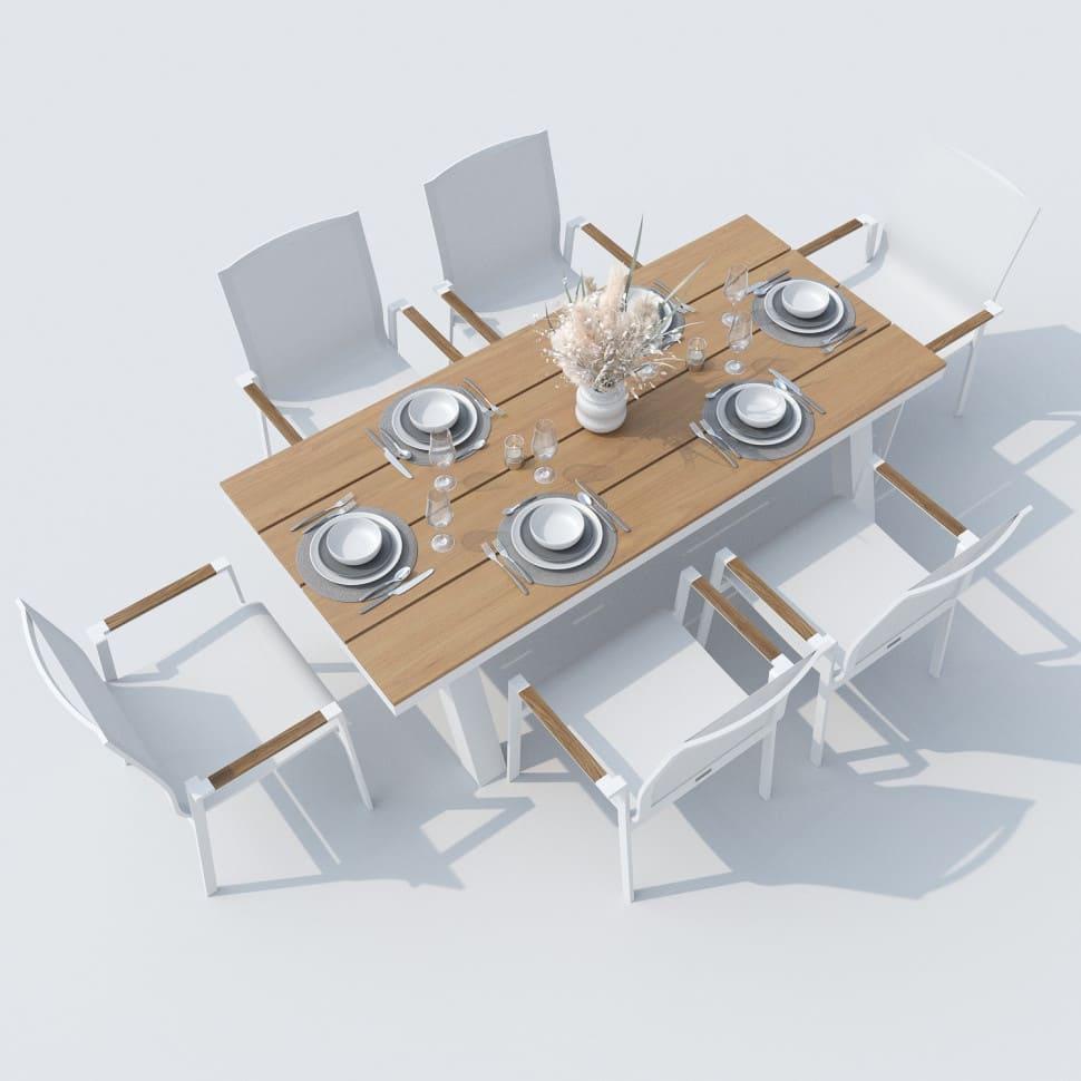 Материалы: каркас - всесезонный алюминий с порошковым напылением, столешница - поливуд (древесно-полимерный композит) Габариты: Д 180 * Ш 90 * В 76 Цвет: каркас белый / столешница ДПК (поливуд)