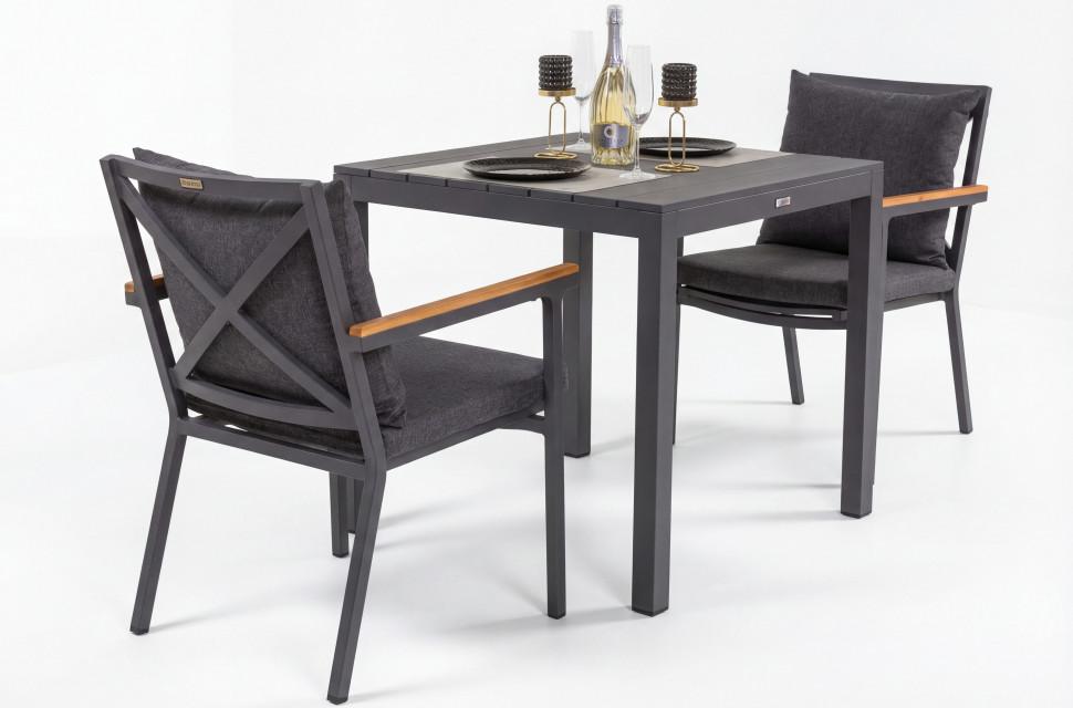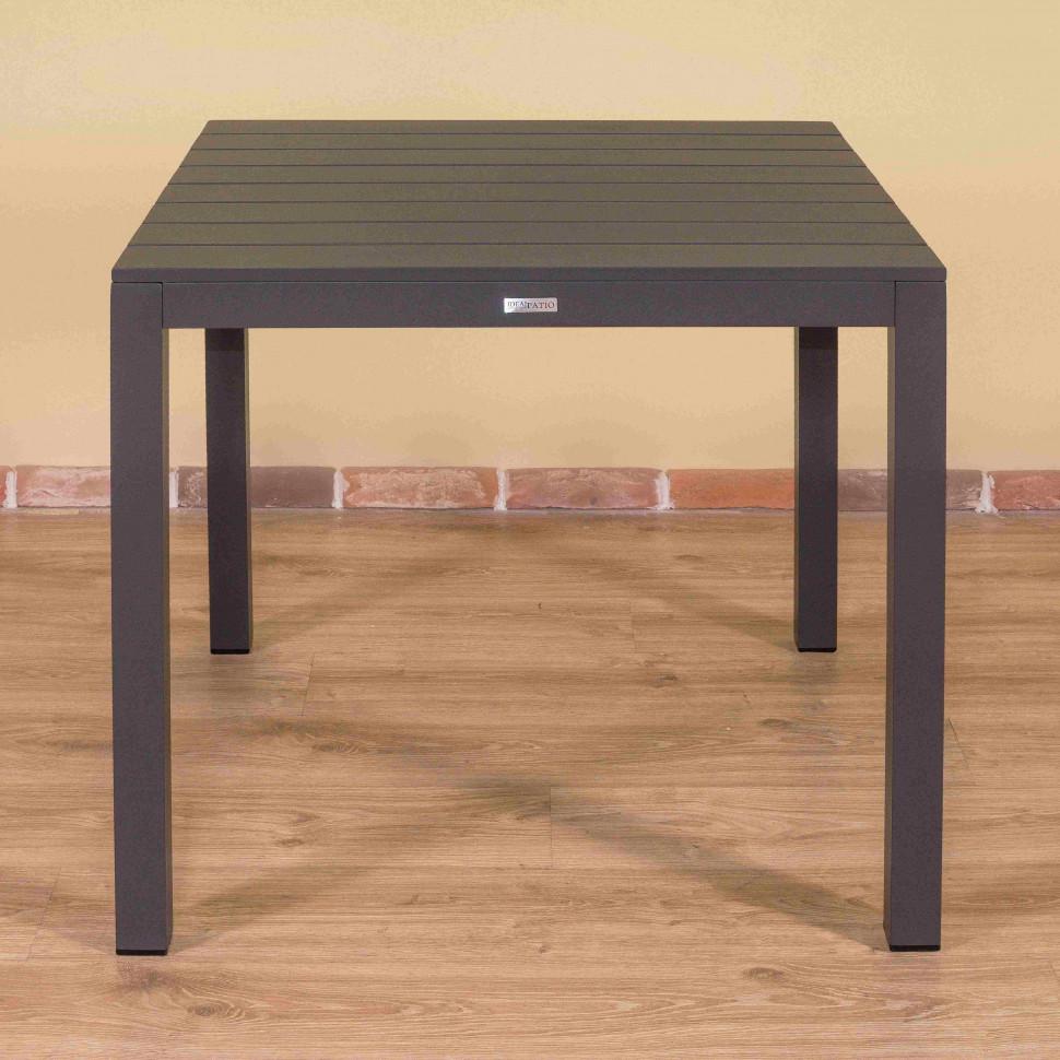 Материалы: каркас - всесезонный алюминий с порошковым напылением, столешница - алюминиевые планки Цвет: каркас карбон (темно-серый)