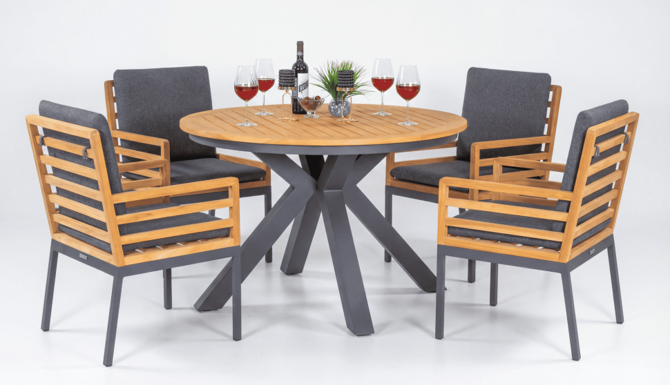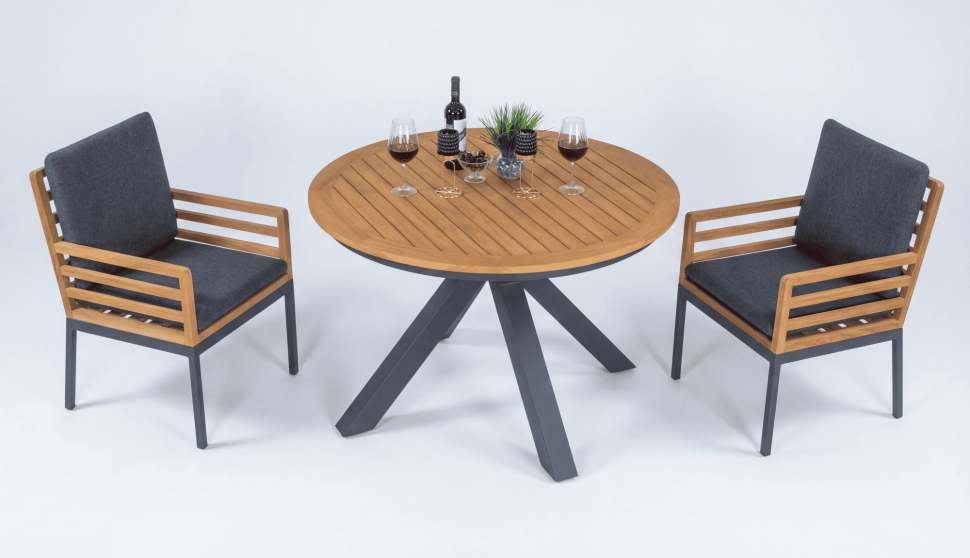 Стол IDEAL PATIO Стол круглый обеденный AMATO карбон, тик арт. AMT.2110112