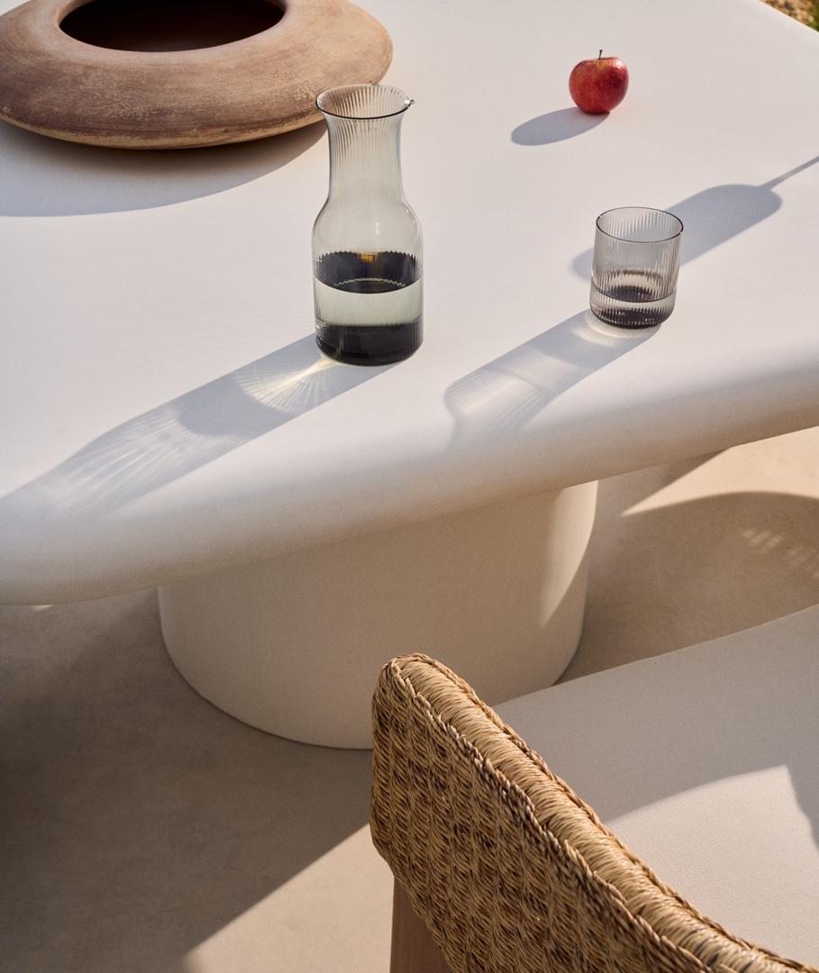 Стол Addaia — это идеальное сочетание органичного дизайна и современной функциональности, созданное для того, чтобы привнести уникальность в любое пространство, как в помещении, так и на улице. Его эстетика, определяемая округлыми и плавными линиями, вызывает ощущение связи с окружающей средой, а белый материал GFRC — инновационный тип лёгкого цемента, армированного стекловолокном, — обеспечивает исключительную устойчивость к самым суровым погодным условиям. Каждый стол — это уникальное изделие с оттенками, текстурами и пористостью, которые подчёркивают его ручной и эксклюзивный характер. Очень тонкая и гладкая поверхность, практически без пор, создаёт ощущение роскоши, которое контрастирует с присущей цементу прочностью. Несмотря на то, что материал устойчив к атмосферным воздействиям, со временем из-за его естественных характеристик могут появиться микротрещины или небольшие неровности, которые подчёркивают его аутентичность, не снижая прочности. Чтобы сохранить его красоту, рекомендуется защищать его водонепроницаемым покрытием осенью и зимой и наносить средство для защиты камня Sterina два раза в год. Addaia — это не просто стол, это элемент дизайна, который преображает любое пространство своей органичной и современной индивидуальностью. Просим вас обратить внимание на следующий важный момент: если вы планируете хранить уличную мебель на открытом воздухе, пожалуйста, защитите ее водонепроницаемым чехлом в осенний, зимний периоды и во время сезона дождей. Это поможет сохранить мебель в отличном состоянии и продлить ее срок службы.