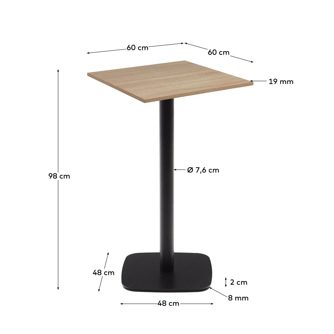 Стол La Forma (ех Julia Grup) Dina высокий стол из меламина с натуральной отделкой и металлической черной ножкой 60x60x96 арт. 177059