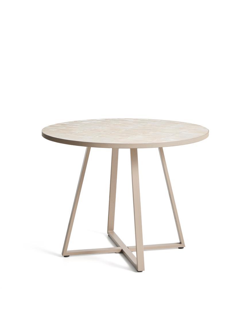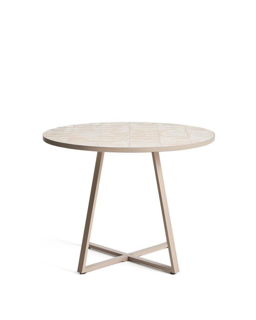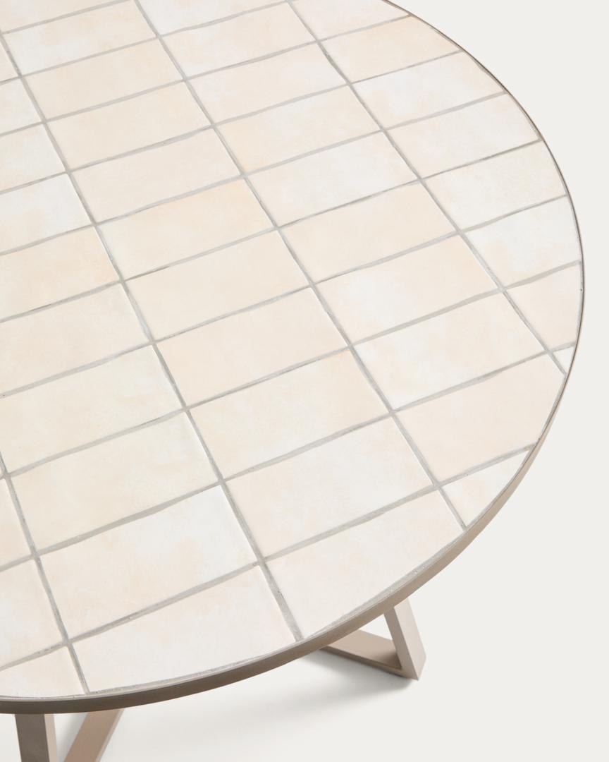 Стол La Forma (ех Julia Grup) Уличный стол Tella из оцинкованной стали бежевого цвета с бежевой плиткой, диаметр 120 см арт. 483445