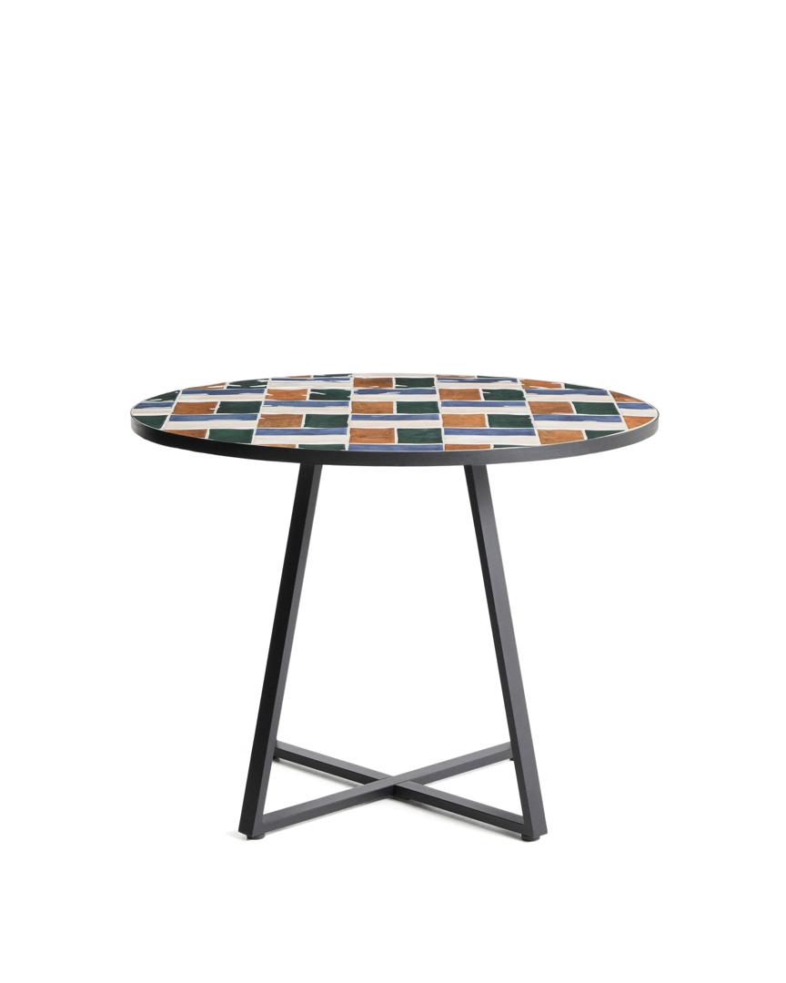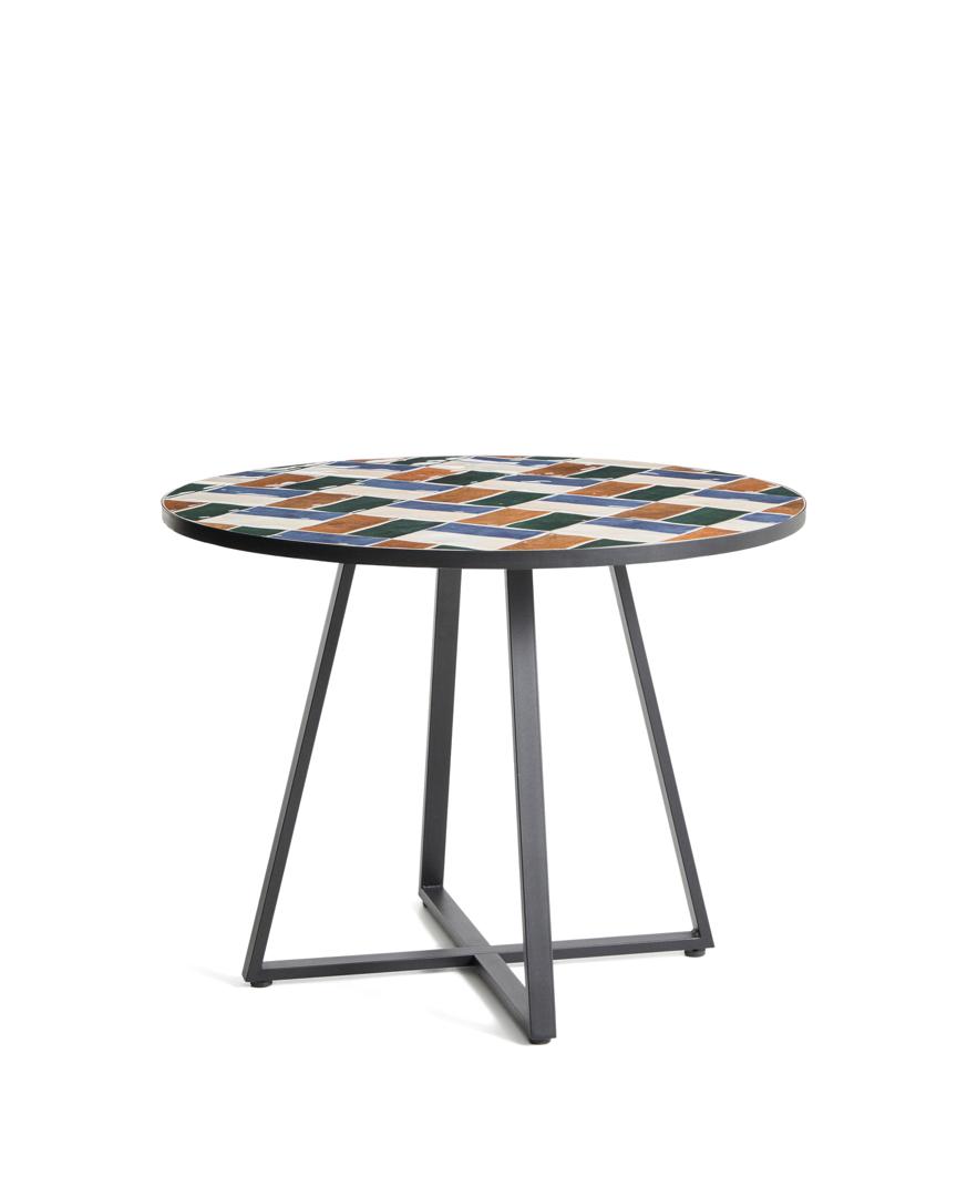 Стол La Forma (ех Julia Grup) Уличный стол Tella из оцинкованной стали графитового цвета с разноцветной плиткой, диаметр 120 см арт. 483443
