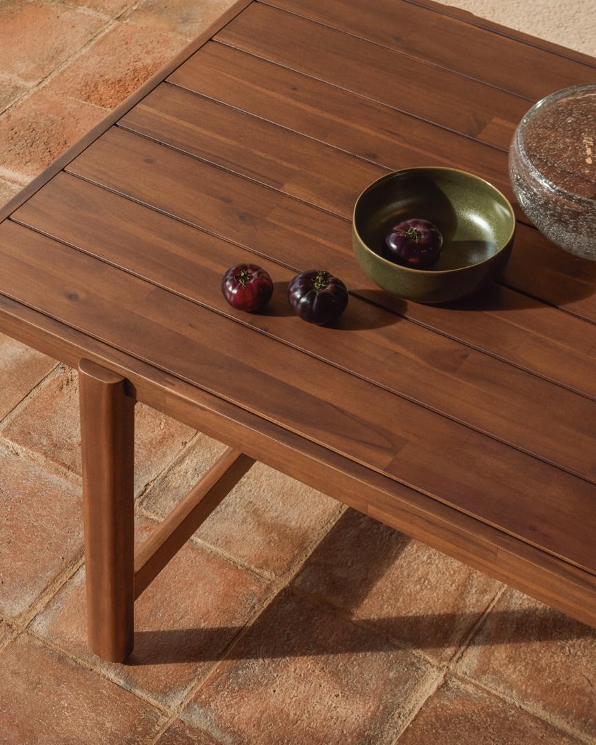 Стол Itani изготовлен из массива акации и отличается простыми линиями и прочной конструкцией. Каждое изделие имеет свои особенности по оттенку и текстуре, обусловленные свойствами материала. Он подходит как для использования в помещении, так и на открытом воздухе и разработан таким образом, чтобы адаптироваться к различным условиям и назначениям. Для сохранения его внешнего вида со временем мы рекомендуем наносить защитное средство для древесины Sterina не реже одного раза в год.