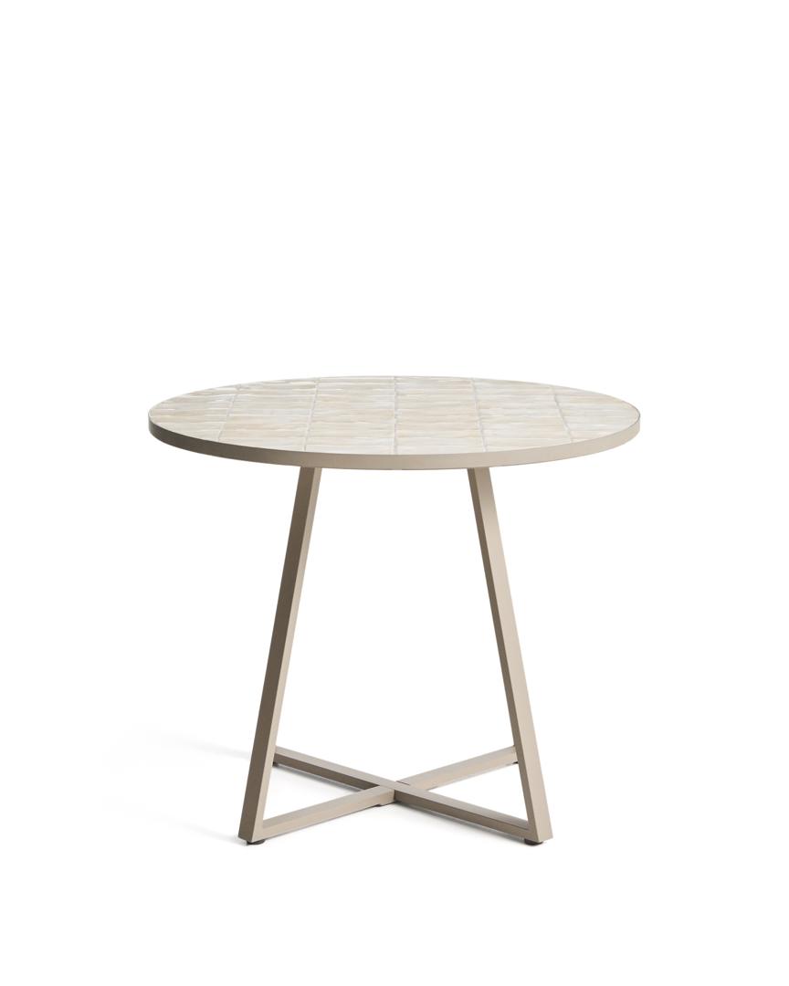 Стол La Forma (ех Julia Grup) Уличный стол Tella из бежевой стали с бежевой плиткой 90 см арт. 482355