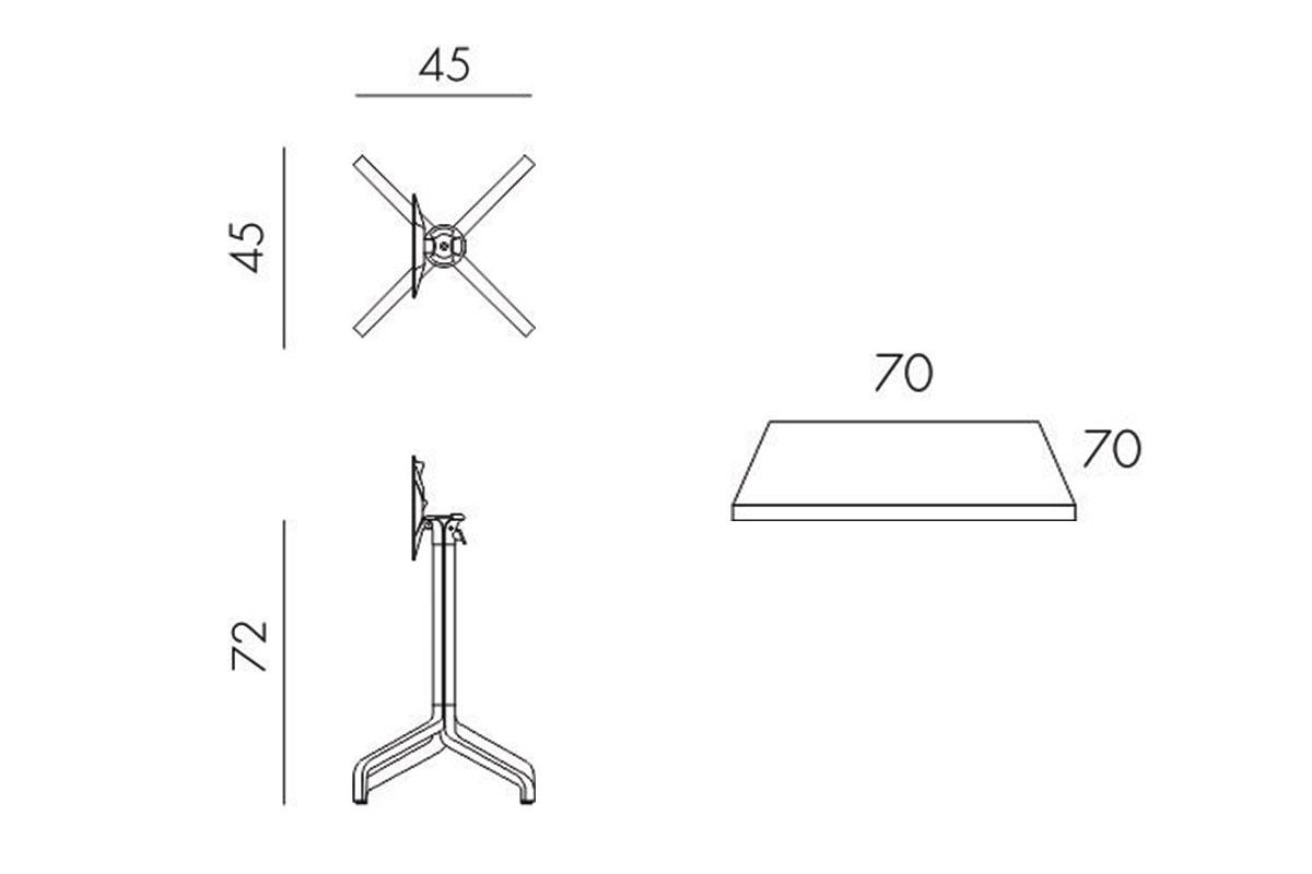 Модель - Стол складной квадратный Frasca Mini 70*70, белый (база + столешница)