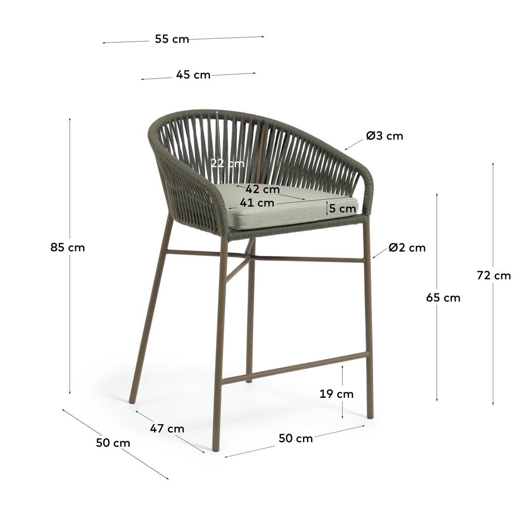 Стул барный La Forma (ех Julia Grup) Стул полубарный Yanet из зеленой веревки, высота 65 см арт. 098025