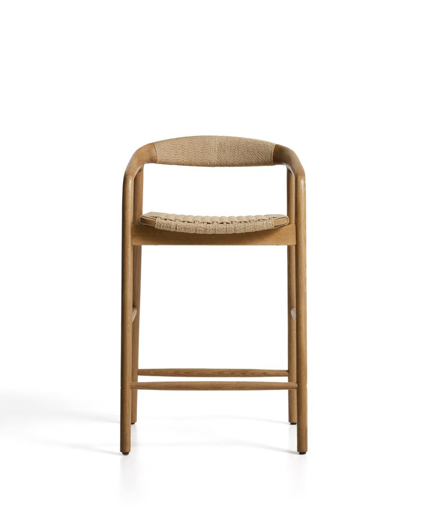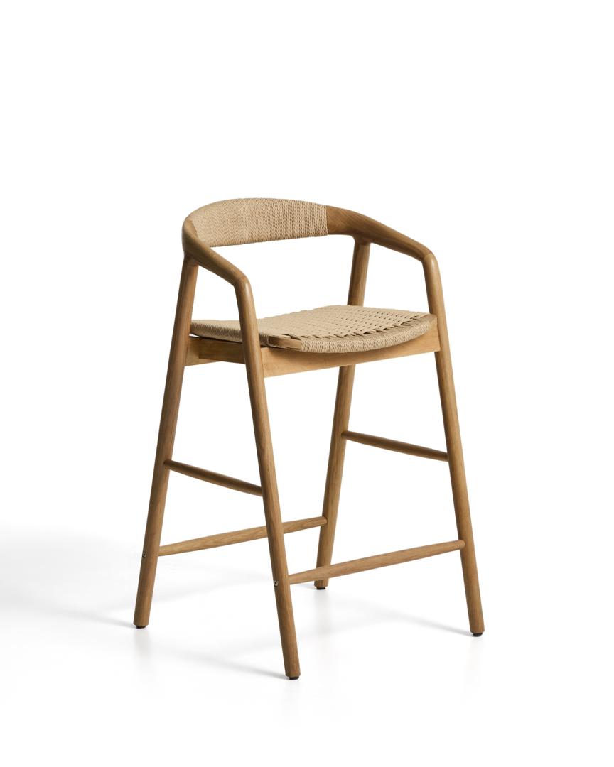 Стул барный La Forma (ех Julia Grup) Уличный полубарный стул Derile из массива дуба в натуральной отделке и бежевой веревки арт. 481899