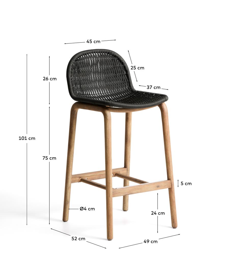 Стул барный La Forma (ех Julia Grup) Уличный барный стул Alipa из акации и веревки темно-серого цвета, 75 см арт. 481337