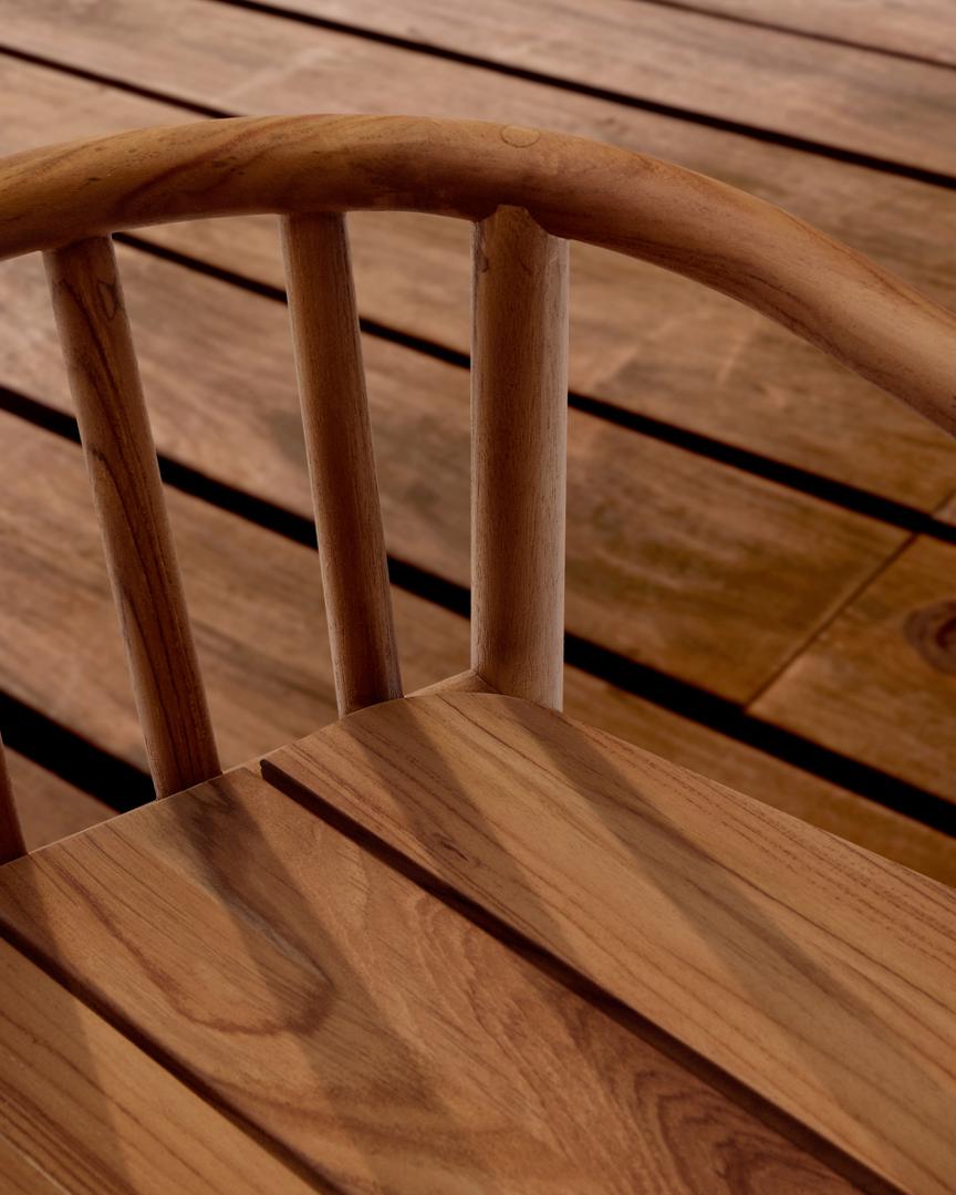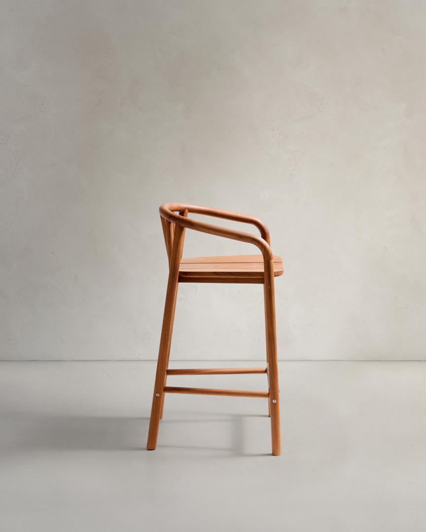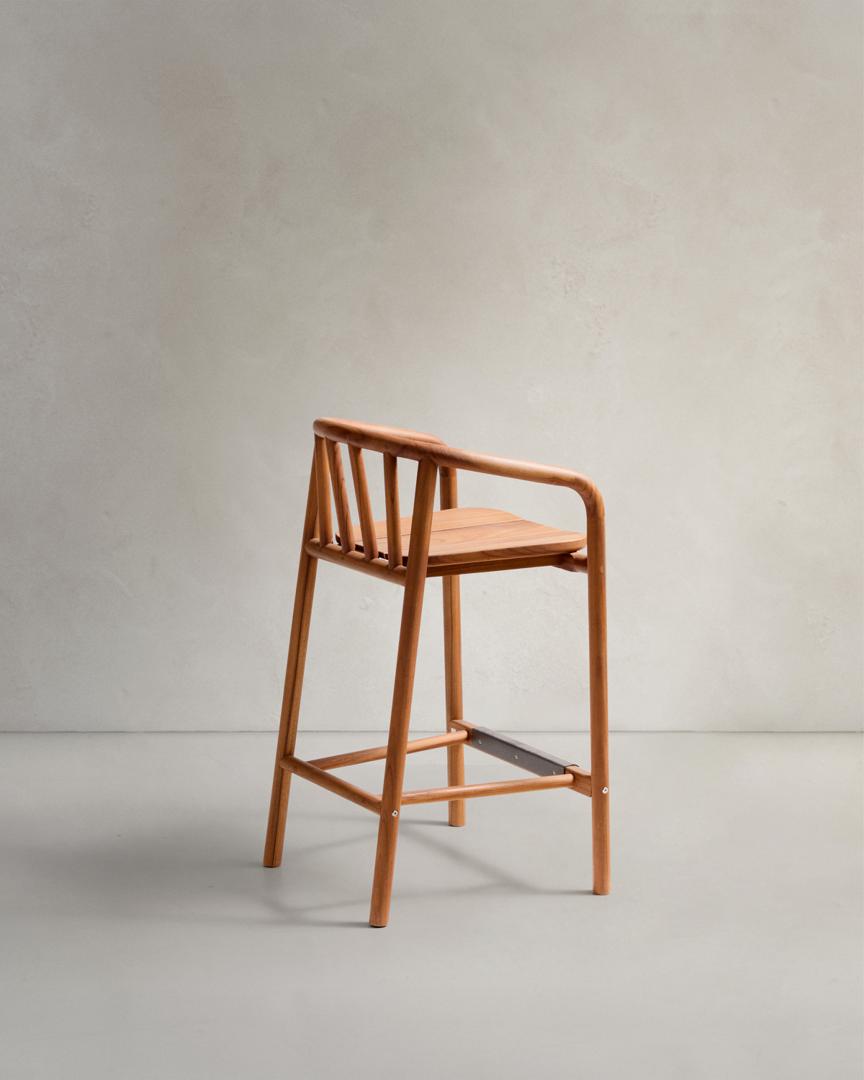 Табурет Turqueta, разработанный эксклюзивно компанией Made Studio для Kave Home, изготовлен из массива тикового дерева, который на 100% сертифицирован FSC, что гарантирует ответственное ведение лесного хозяйства. Идеально подходит для использования на открытом воздухе, его дизайн сочетает в себе функциональность и эстетику с подлокотниками, которые обеспечивают больший комфорт. Древесина требует простого ежегодного ухода с помощью защитного покрытия из тика Sterina. Turqueta входит в коллекцию, которую вы можете легко комбинировать с другими изделиями, чтобы создать гармоничную и непринужденную атмосферу на вашем открытом воздухе.