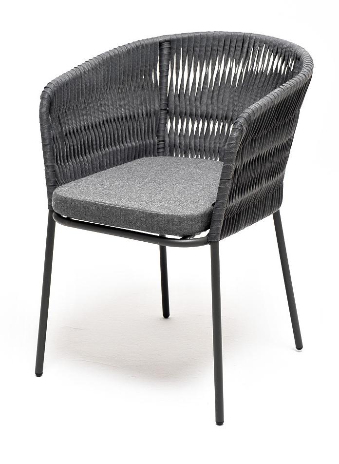 Стул 4SIS "Бордо" стул плетеный из роупа (колос), каркас из стали серый (RAL7022) муар, роуп серый 15мм, ткань серая арт. BORE-CH-st001 RAL7022 Mua grey(gray)