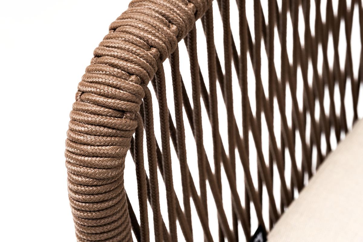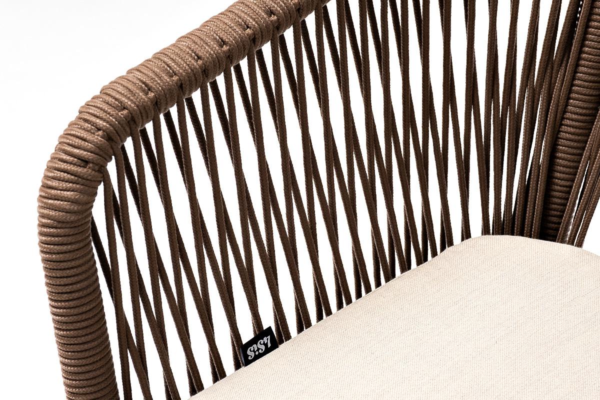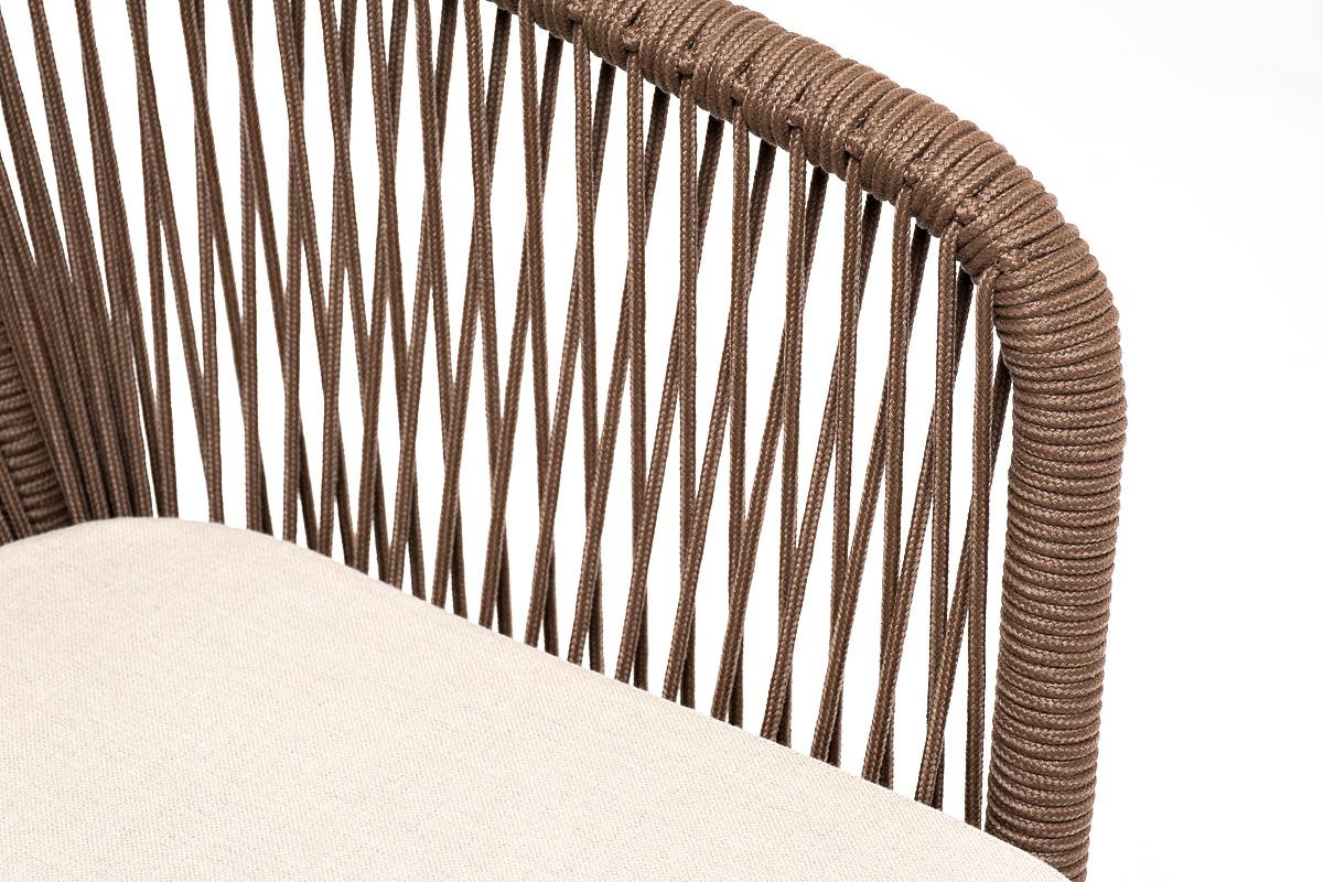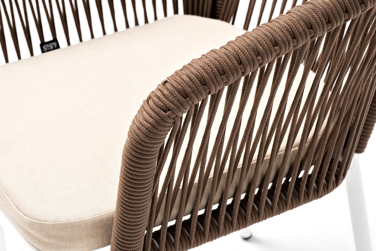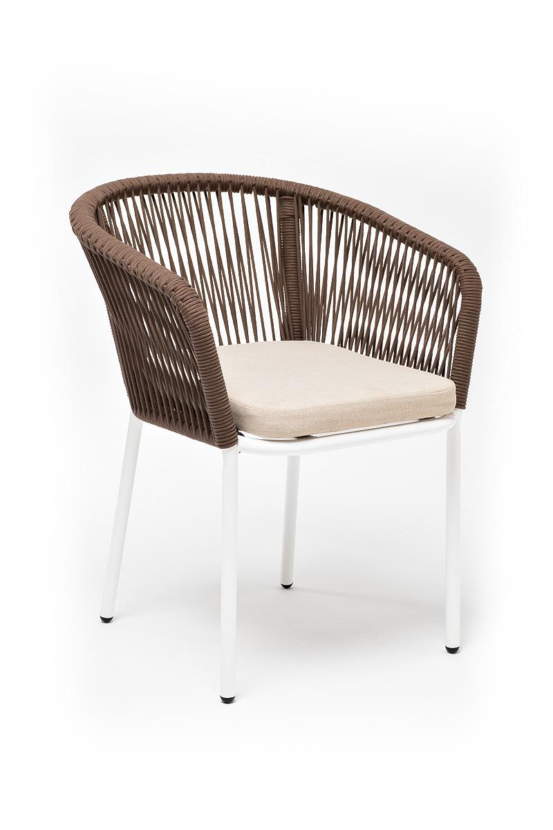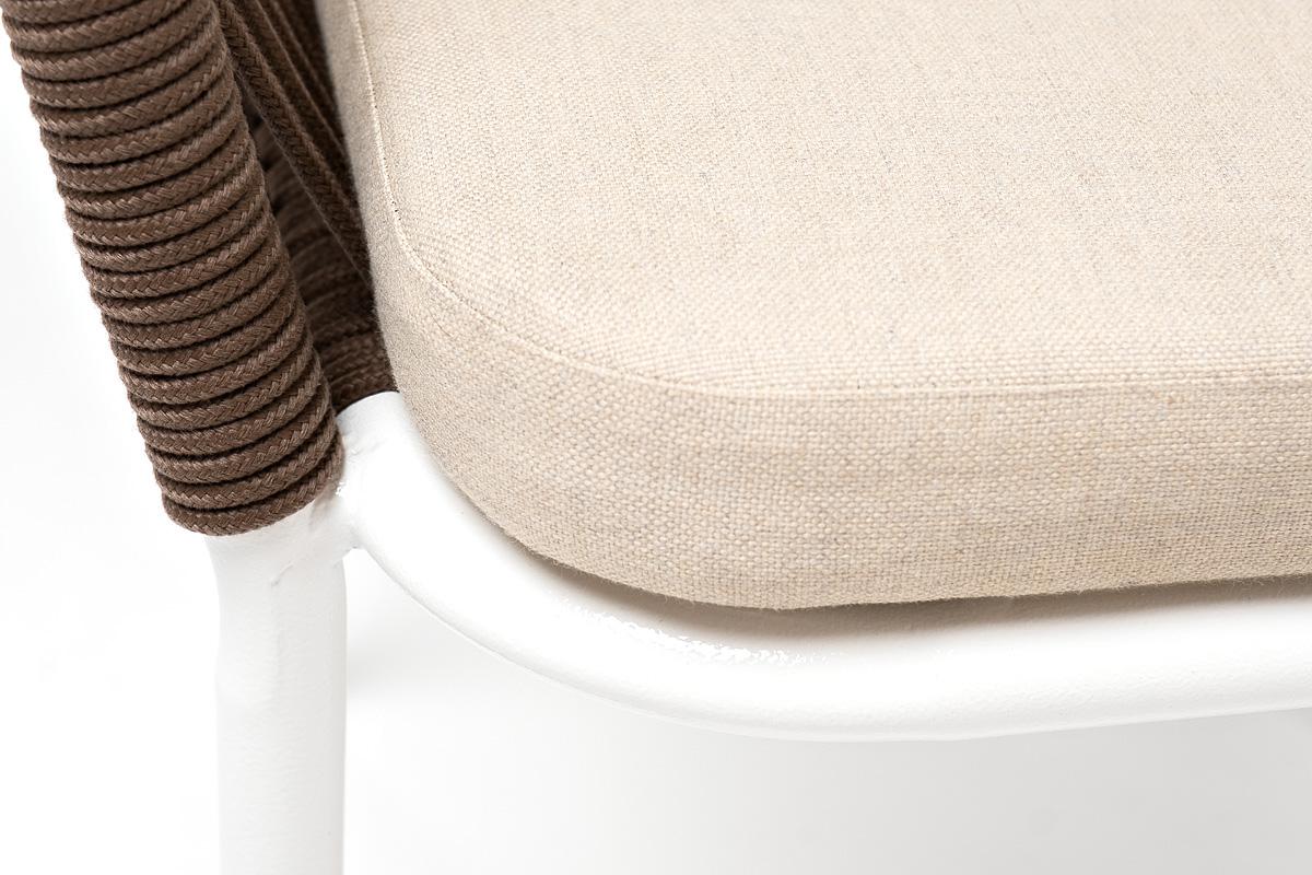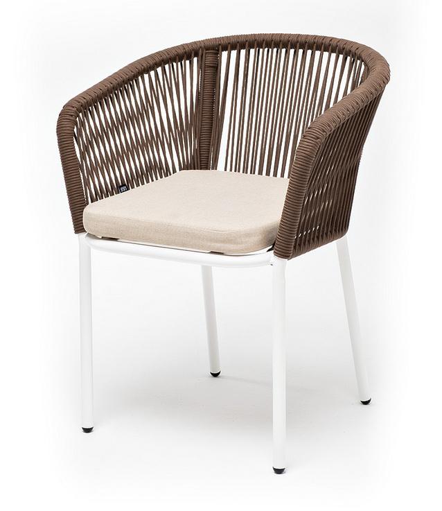 Стул 4SIS "Марсель" стул плетеный из роупа, каркас алюминий белый муар, роуп коричневый круглый, ткань бежевая 052 арт. MAR-CH-001 W Mua brown(beige052)