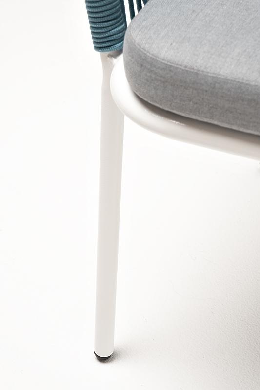 Стул 4SIS "Марсель" стул плетеный из роупа, каркас алюминий светло-серый (RAL7035) муар, роуп бирюзовый круглый, ткань светло-серая арт. MAR-CH-001 RAL7035 Mua blue(H-gray)