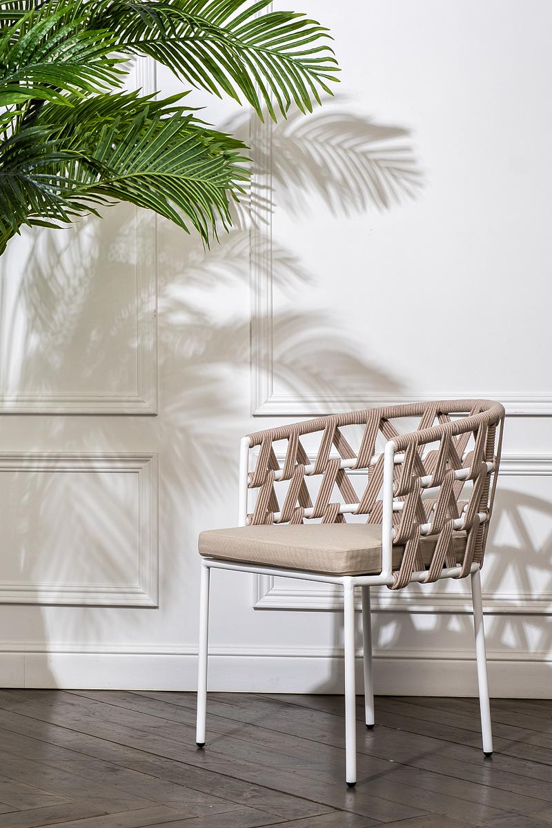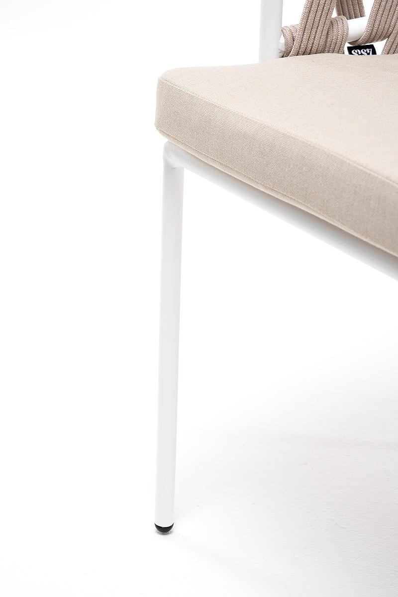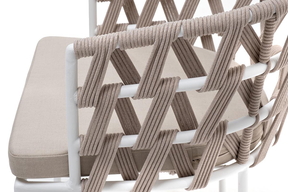 Стул 4SIS "Диего" стул плетеный из роупа, каркас из стали белый муар, роуп бежевый круглый, ткань бежевая 15052 арт. DIE-CH-st001 W Mua beige(beige15052)