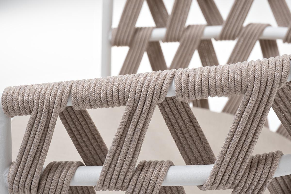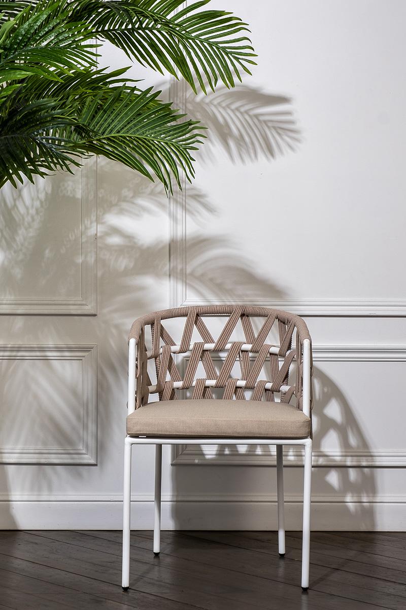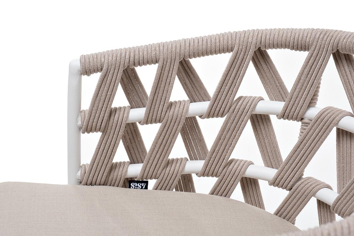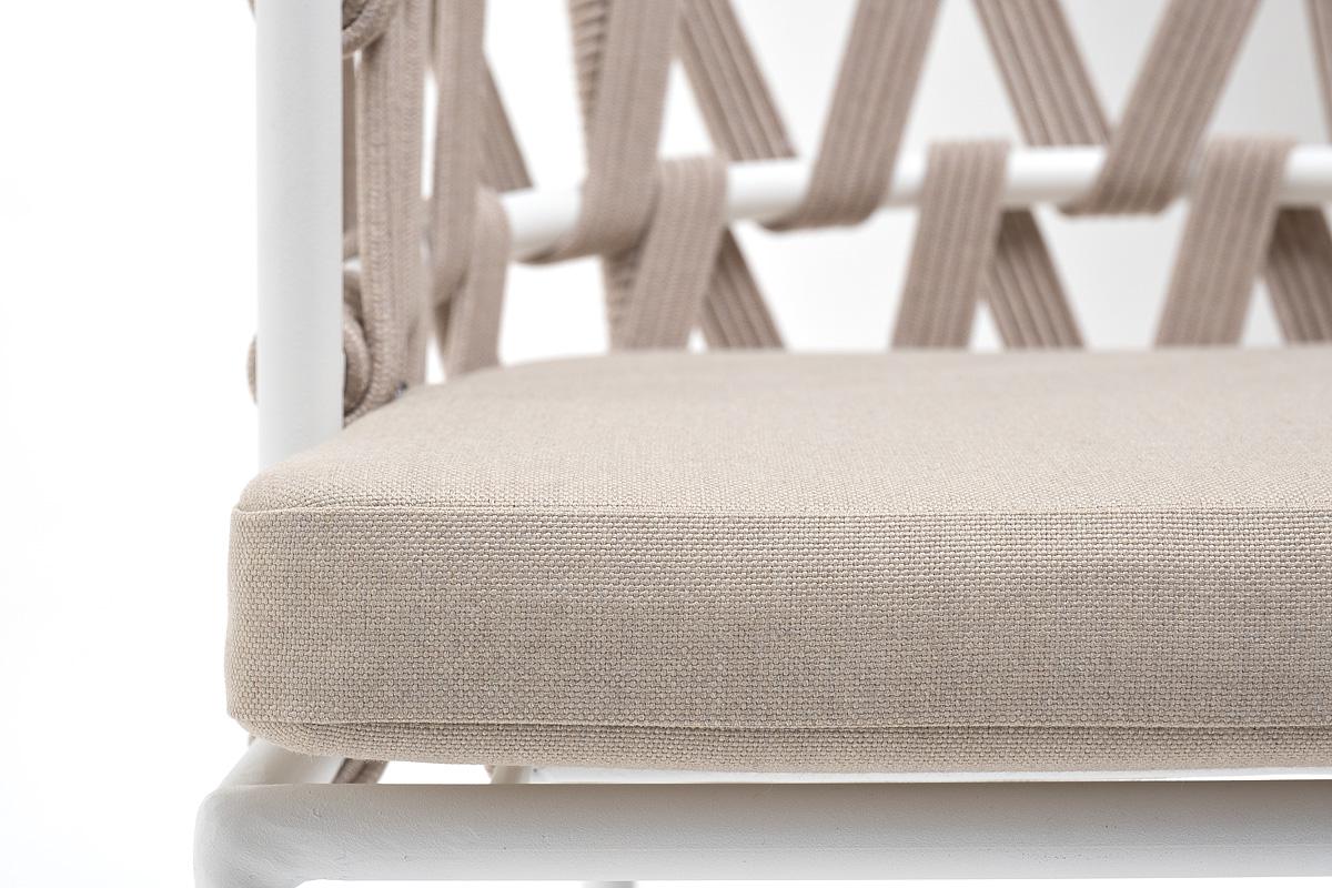Стул 4SIS "Диего" стул плетеный из роупа, каркас из стали белый муар, роуп бежевый круглый, ткань бежевая 15052 арт. DIE-CH-st001 W Mua beige(beige15052)