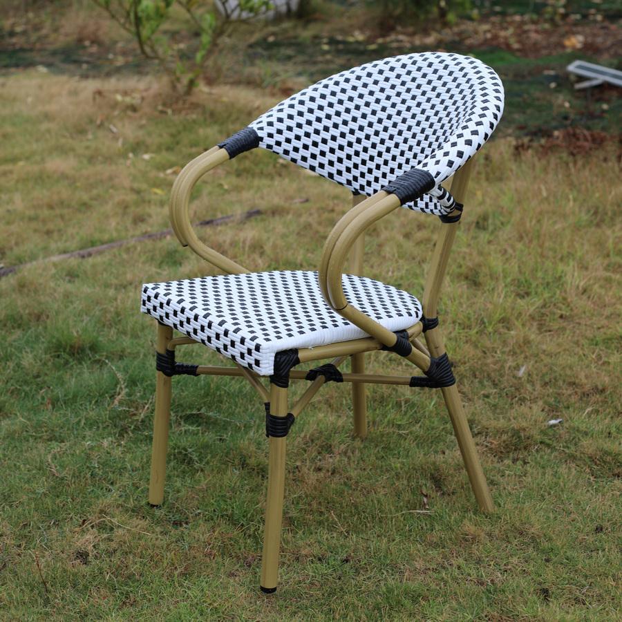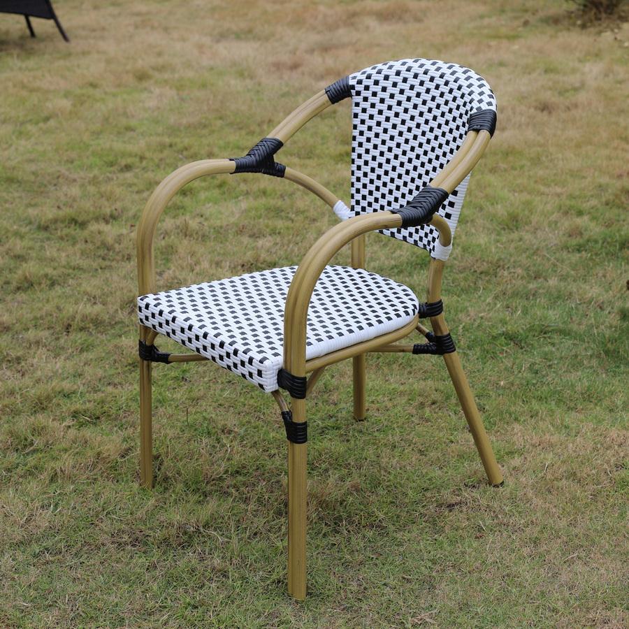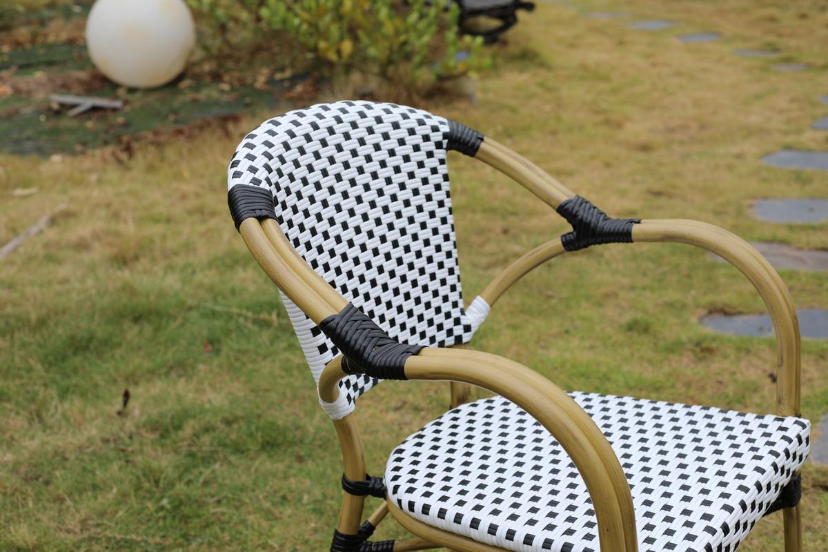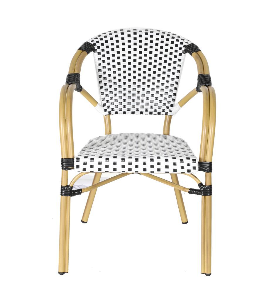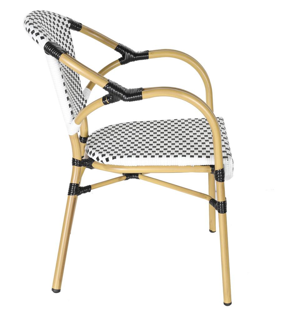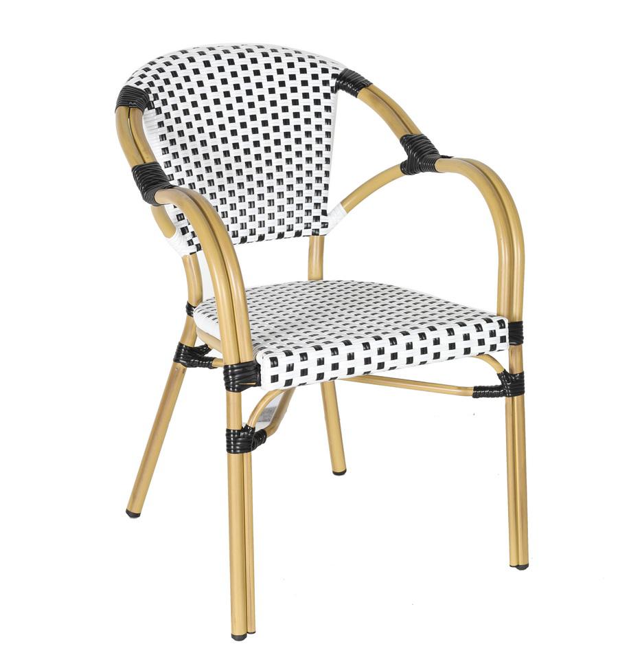 Стул «Кабри» является ярким украшением вашего сада, веранды или террасы. Его можно использовать в помещении и на улице. Каркас выполнен из алюминия, окрашенного износостойкой краской бежевого оттенка. Конструкция имеет изогнутую трубчатую опору диаметром 28х1,5 мм. Плетение выполнено вручную из плоского искусственного ротанга 12х1,3 мм. Цвет оплетки - черно-белый. Широкая спинка стула позволяет комфортно расположиться, а сидение расслабиться. Стул легко очищается от загрязнений, удобен в эксплуатации. Ножки оснащены специальными заглушками, которые защищают их от влаги и улучшают устойчивость на неровной поверхности. Размер стула: 565×650×830 мм.