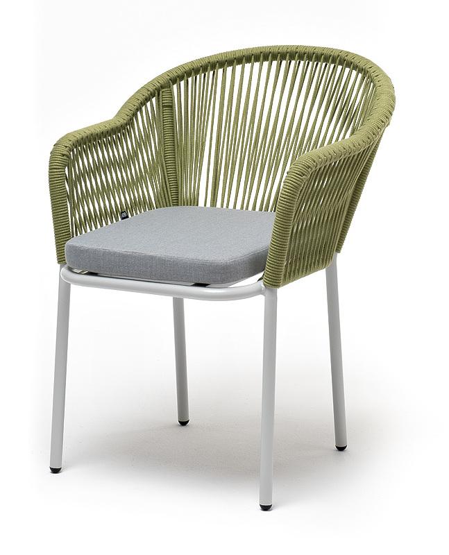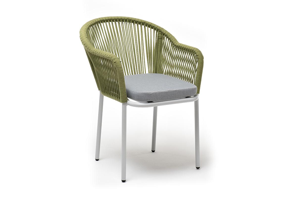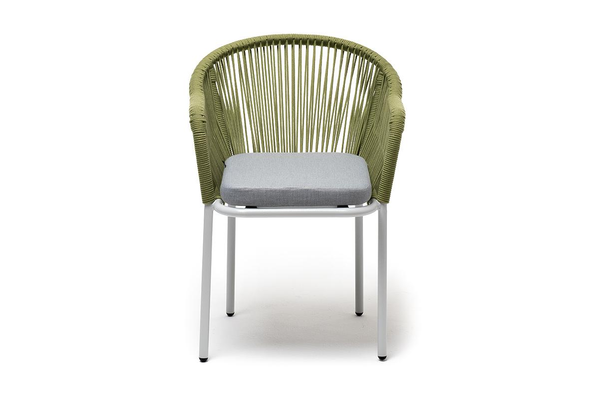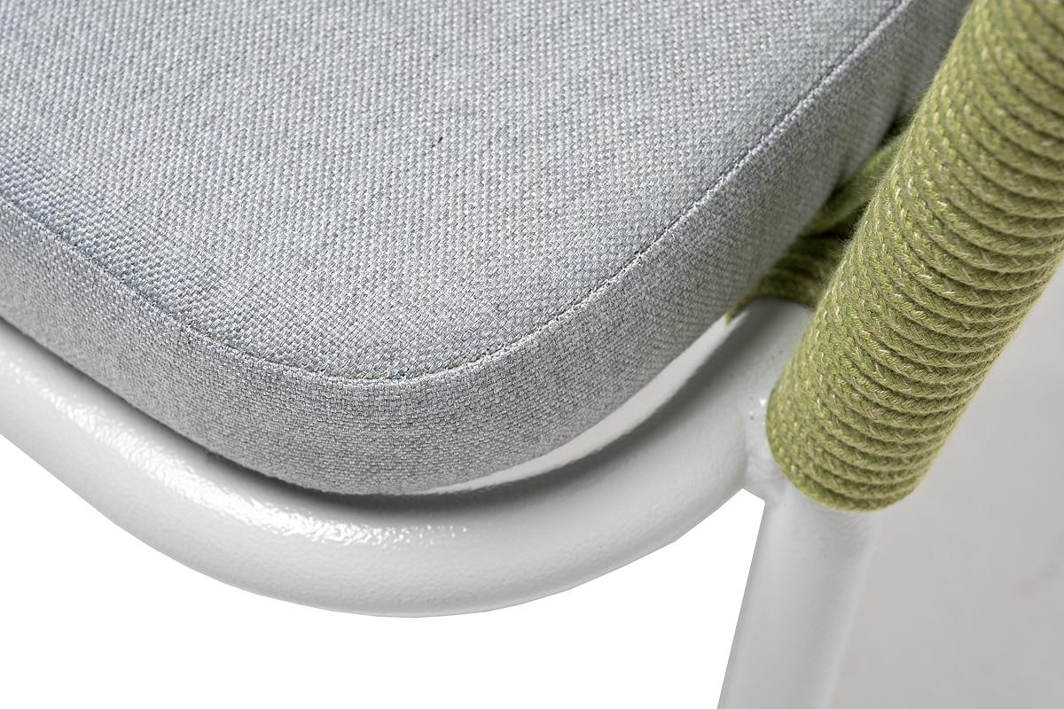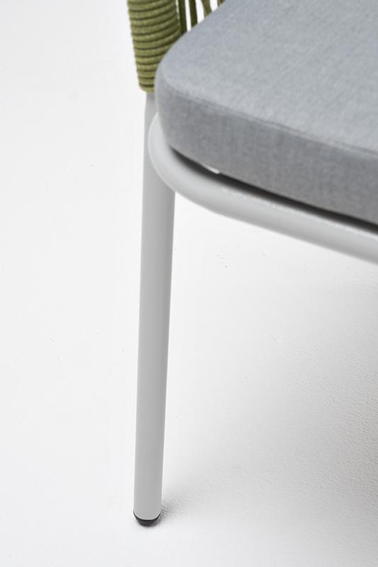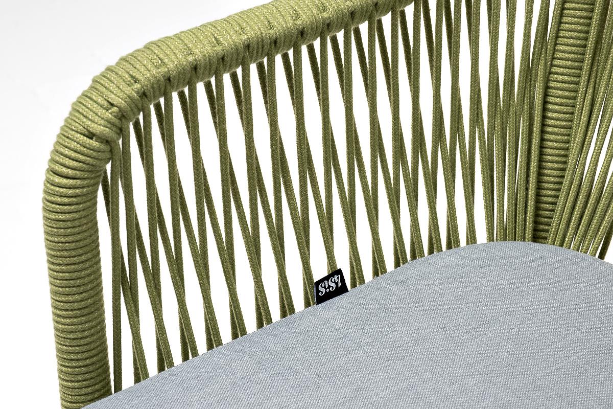 Стул 4SIS "Лион" стул плетеный из роупа, каркас из стали светло-серый (RAL7035) муар, роуп салатовый меланж круглый, ткань светло-серая арт. LIO-CH-st001 RAL7035 Mua mel-green(H-gray)