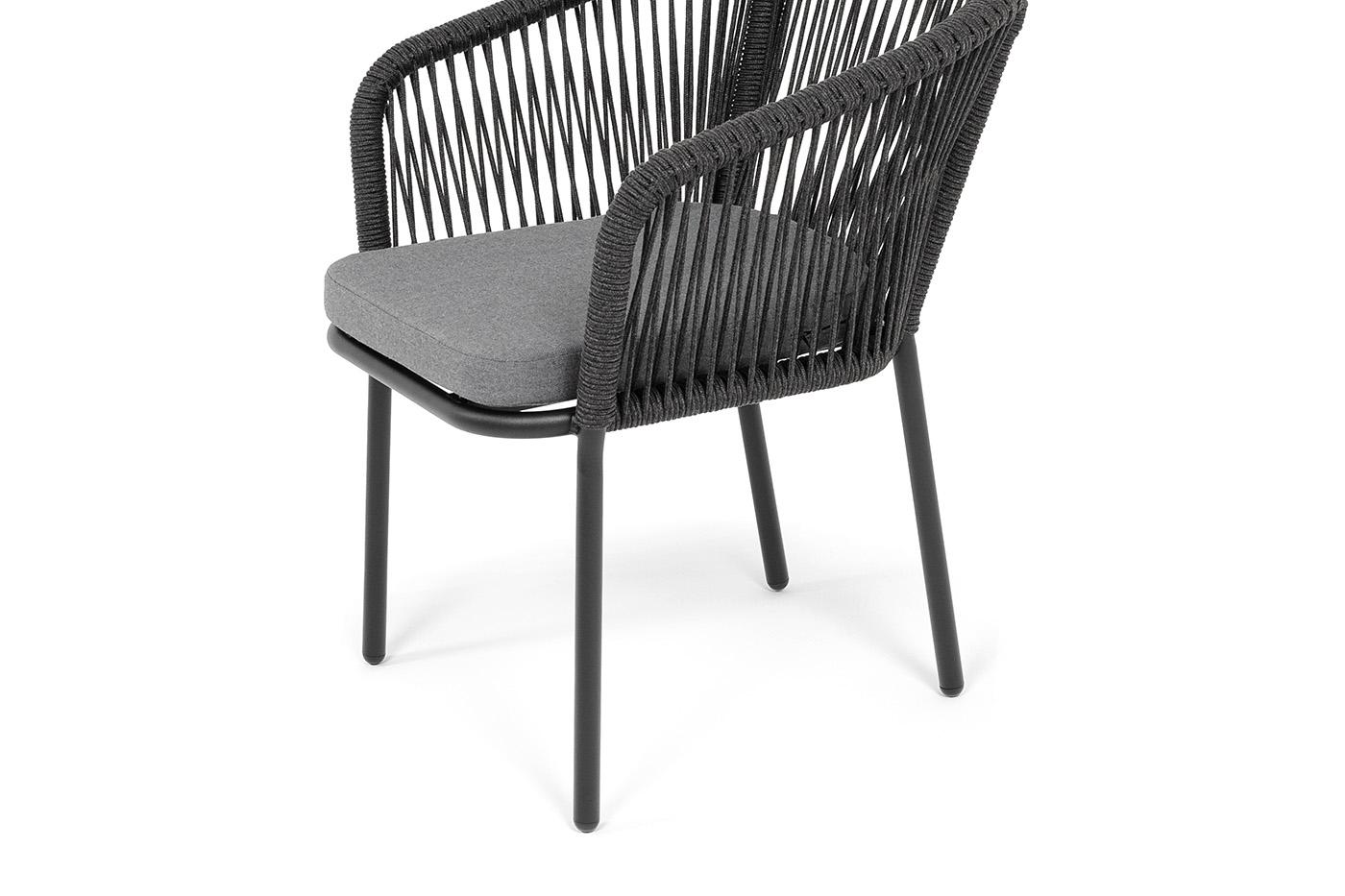 Стул 4SIS "Марсель" стул плетеный из роупа, каркас алюминий черный муар, роуп темно-серый круглый, ткань темно-серая 027 арт. MAR-CH-001 B Mua D-grey(D-gray027)