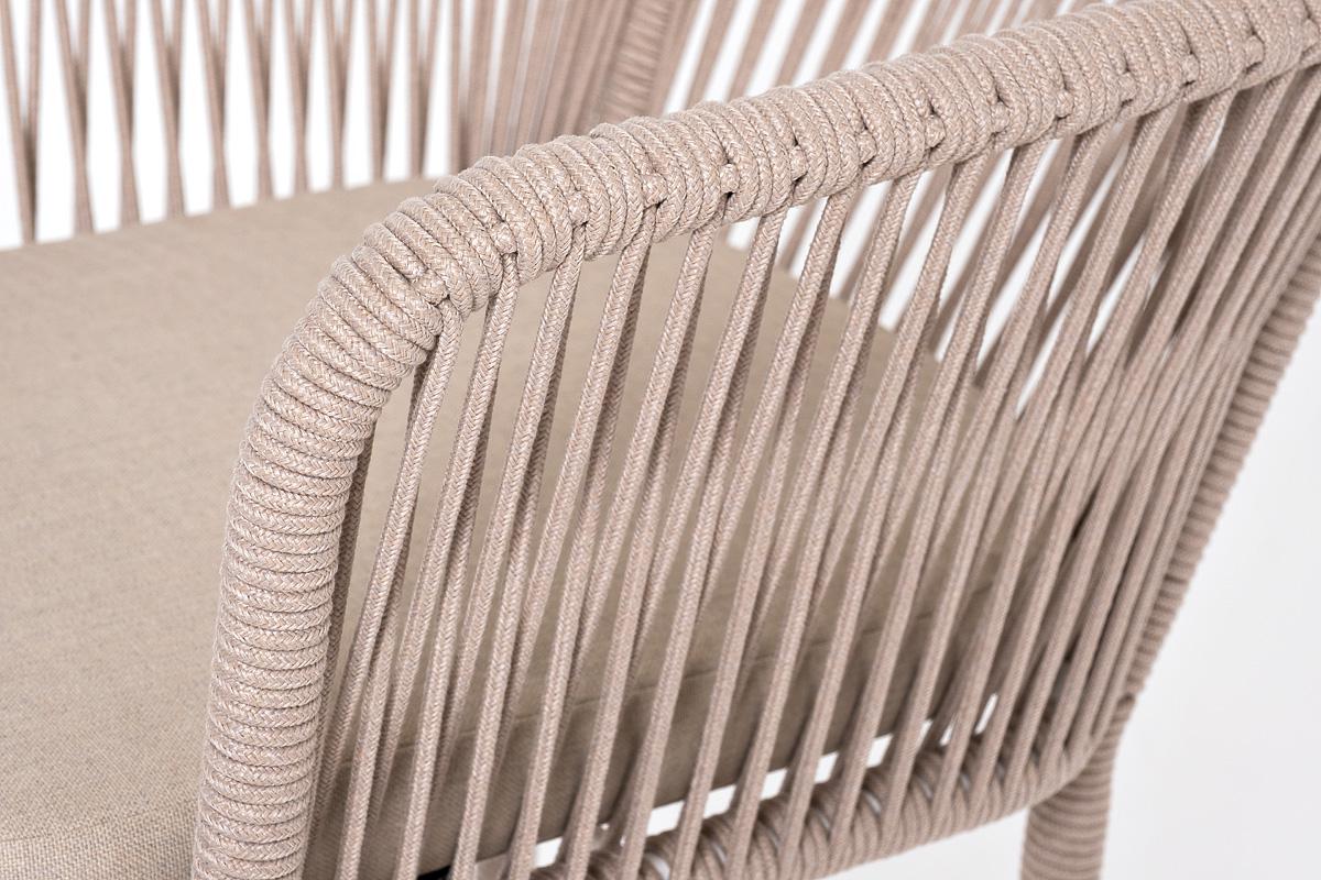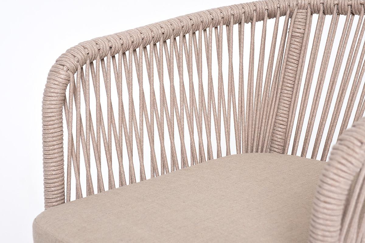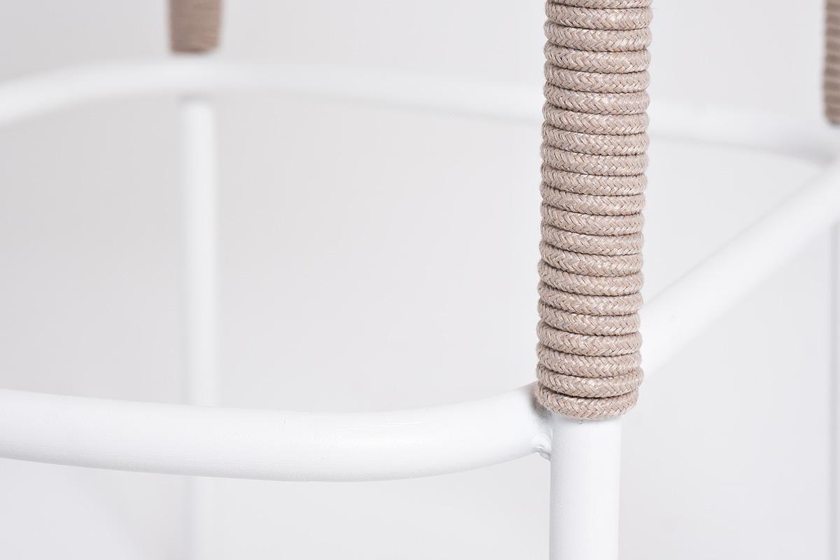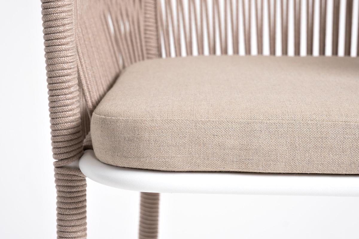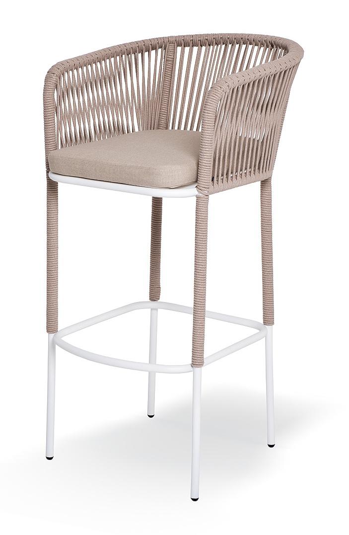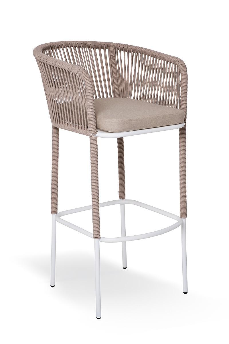 Стул 4SIS "Марсель" стул барный плетеный из роупа, каркас из стали белый муар, роуп бежевый круглый, ткань бежевая 15052 арт. MAR-BCH-st001 W Mua beige(beige15052)