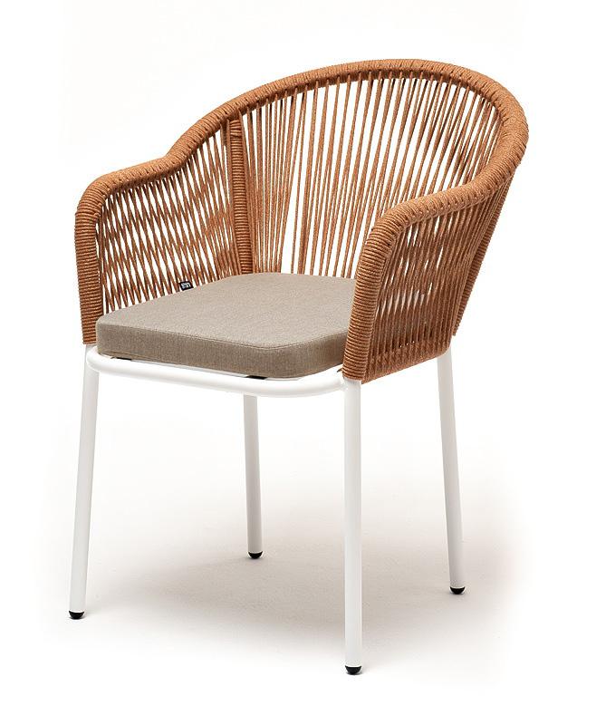 Стул 4SIS "Лион" стул плетеный из роупа, каркас алюминий светло-серый (RAL7035) муар, роуп оранжевый меланж круглый, ткань бежевая 15052 арт. LIO-CH-001 RAL7035 Mua mel-orange(beige15052)