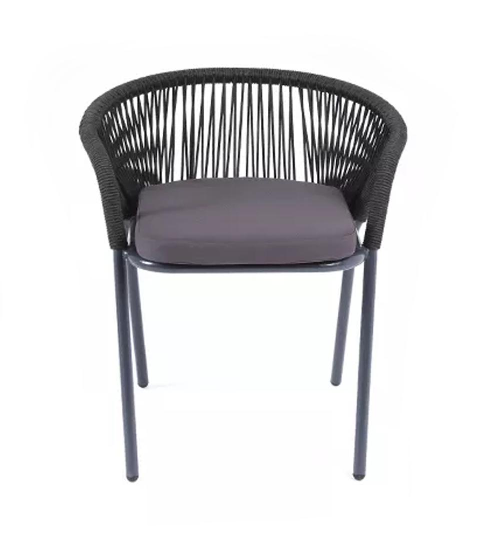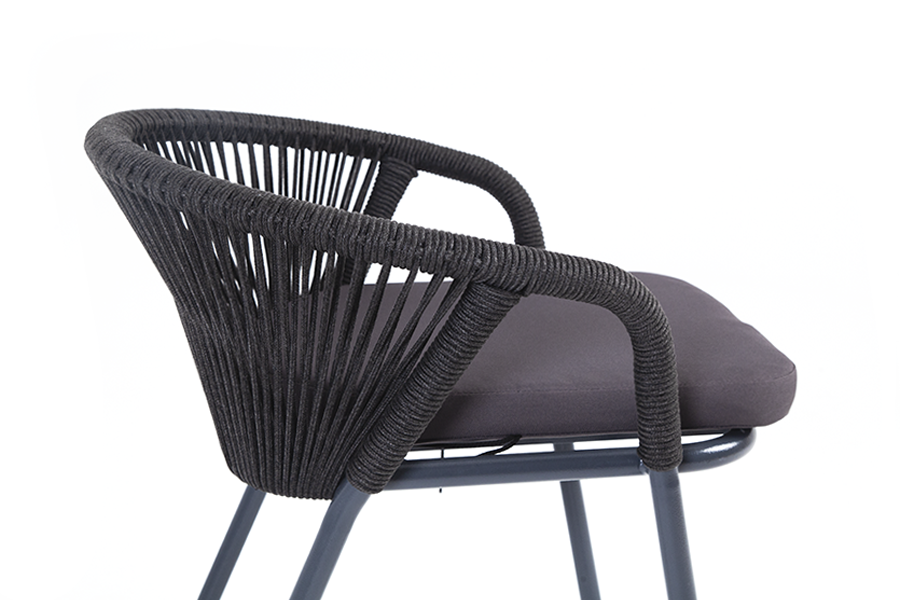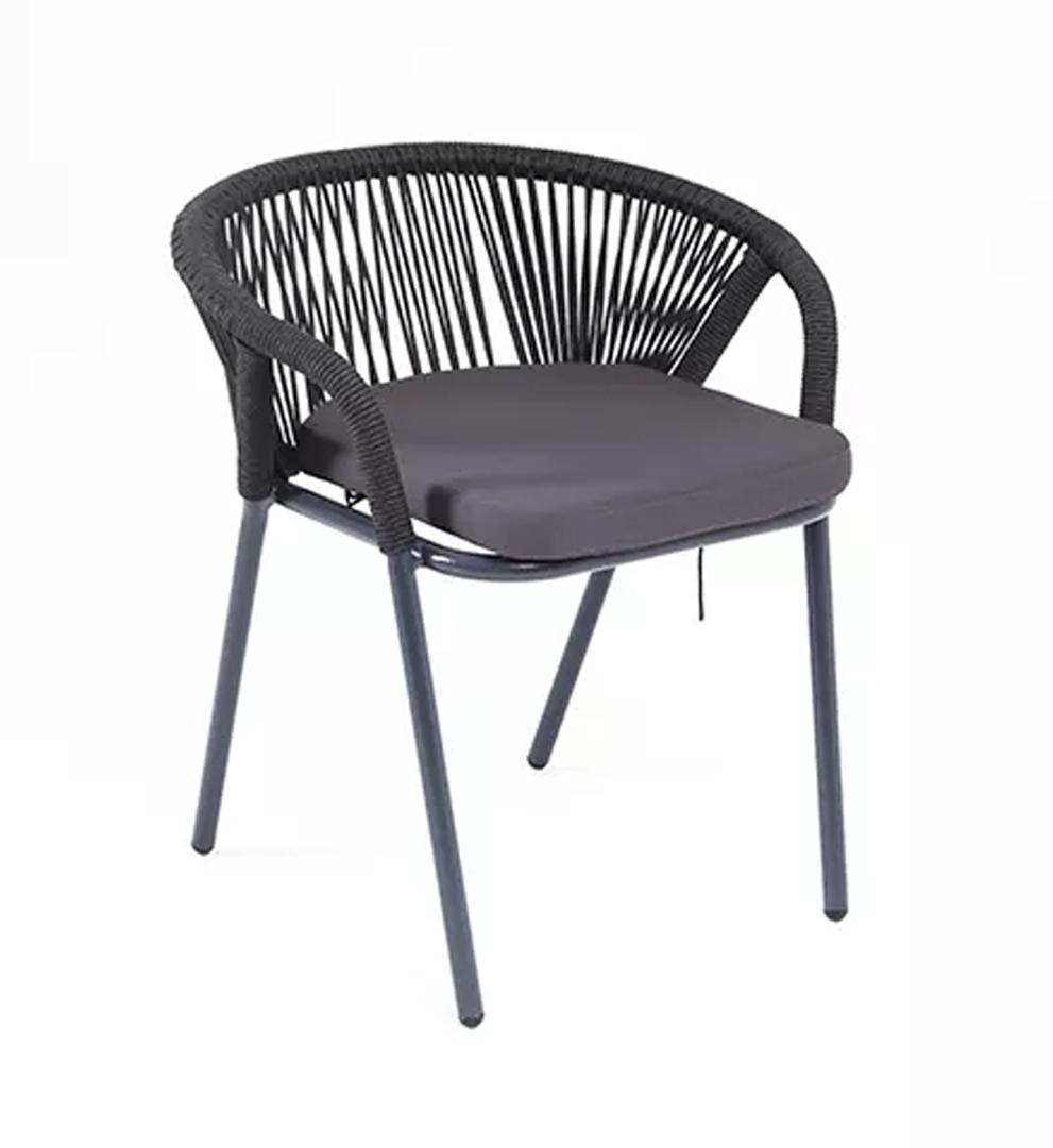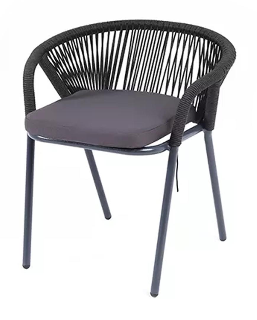 Стул 4SIS "Женева" стул плетеный из роупа, каркас алюминий темно-серый (RAL7024) шагрень, роуп темно-серый круглый, ткань темно-серая арт. GEN-CH-001 RAL7024 SH D-grey(D-gray)