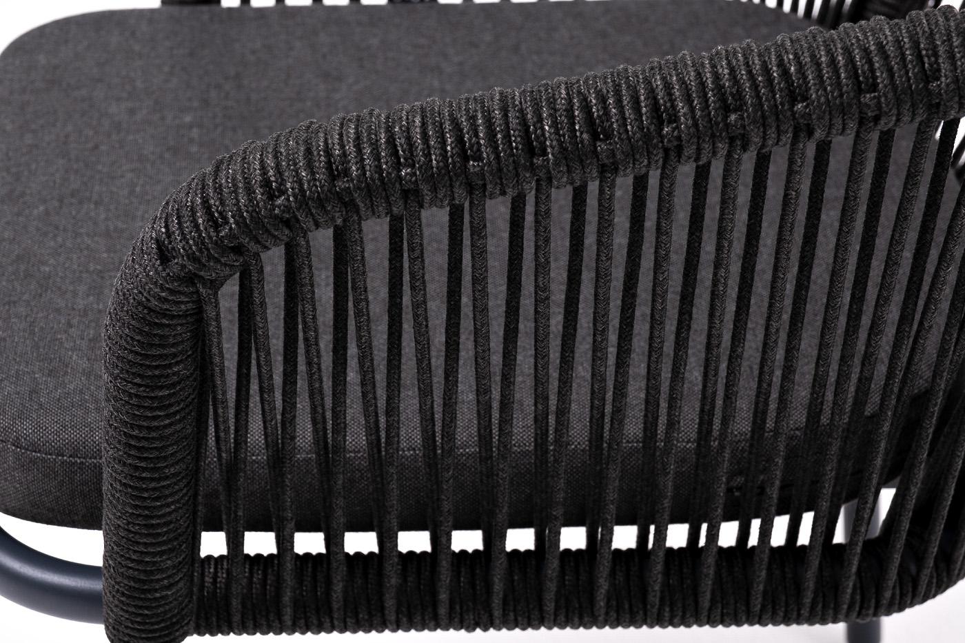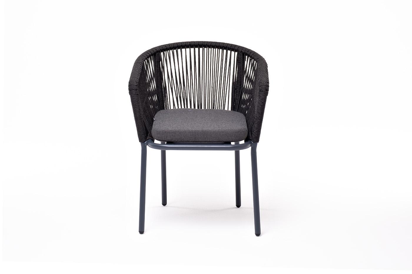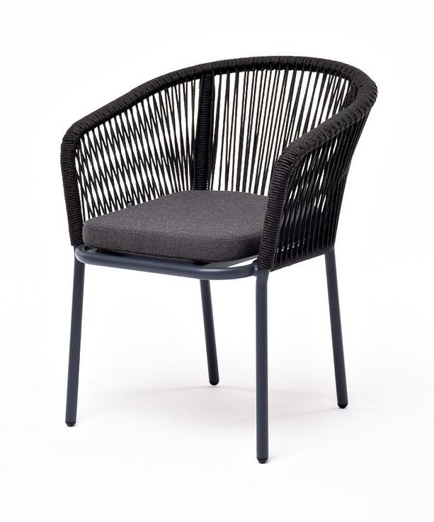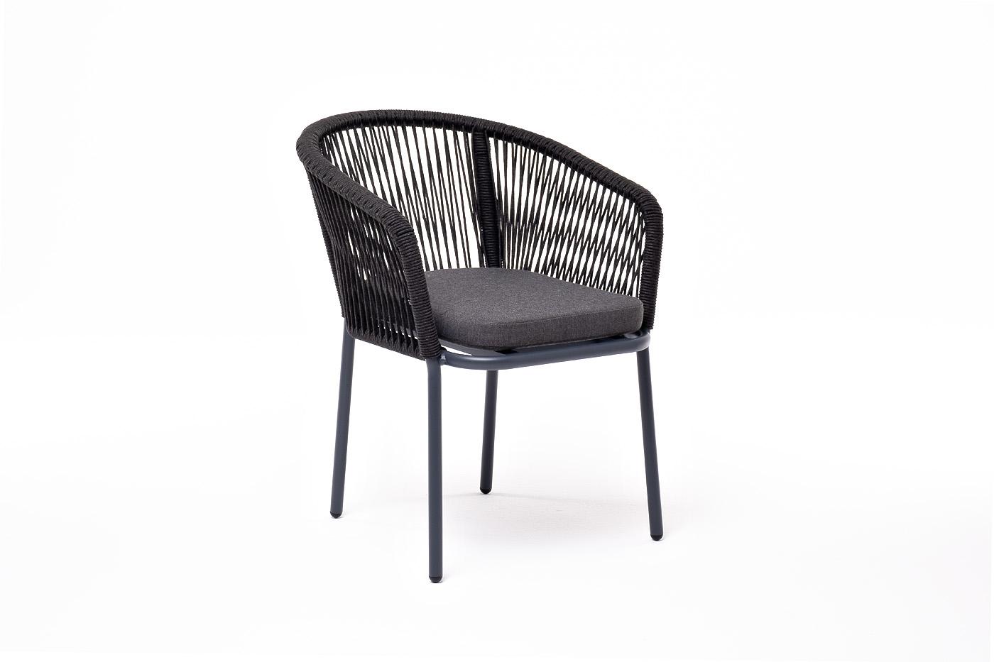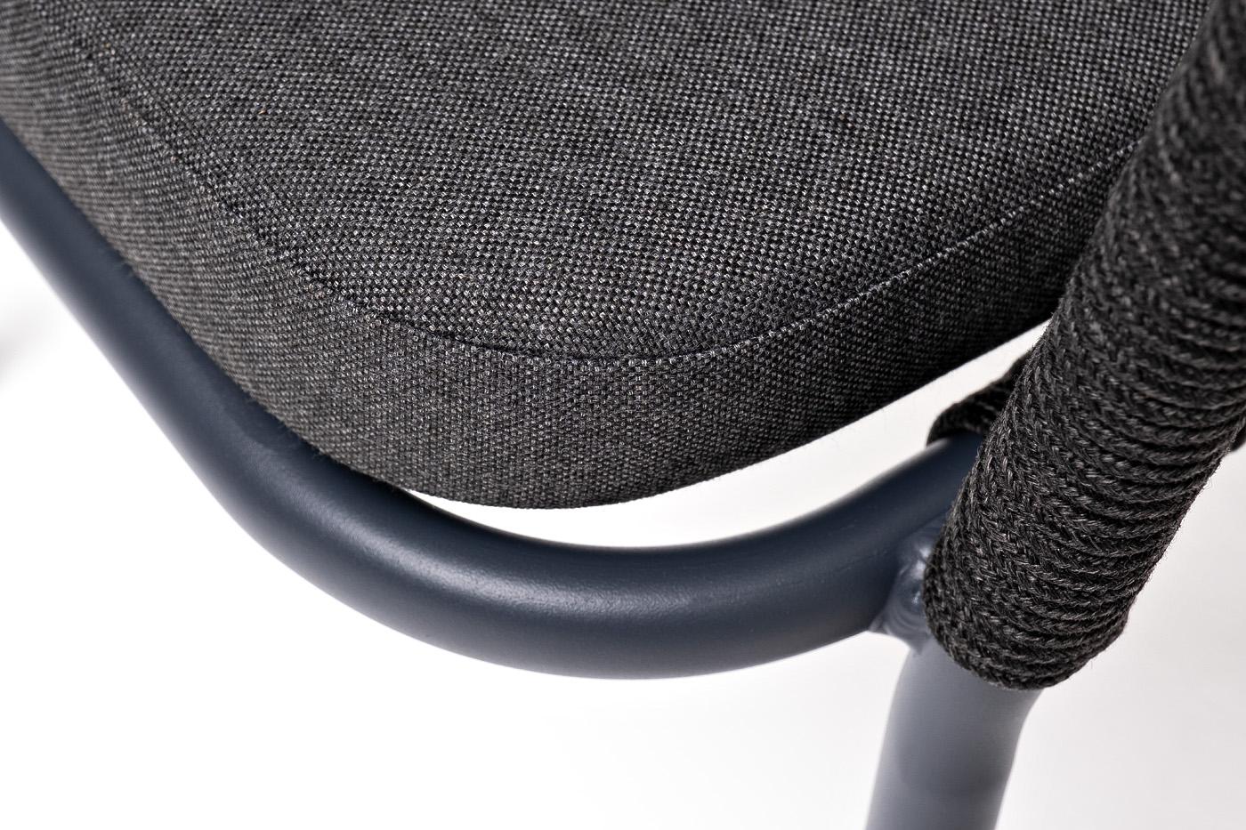 Стул 4SIS "Марсель" стул плетеный из роупа, каркас алюминий темно-серый (RAL7024) муар, роуп темно-серый круглый, ткань темно-серая 027 арт. MAR-CH-001 RAL7024 Mua D-grey(D-gray027)