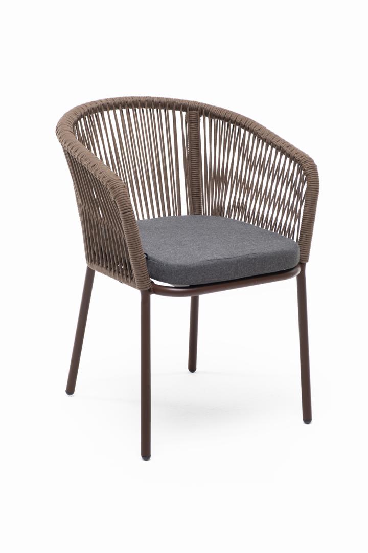 Стул 4SIS "Марсель" стул плетеный из роупа, каркас алюминий коричневый (RAL8016) муар, роуп коричневый круглый, ткань темно-серая 027 арт. MAR-CH-001 RAL8016 Mua brown(D-gray027)
