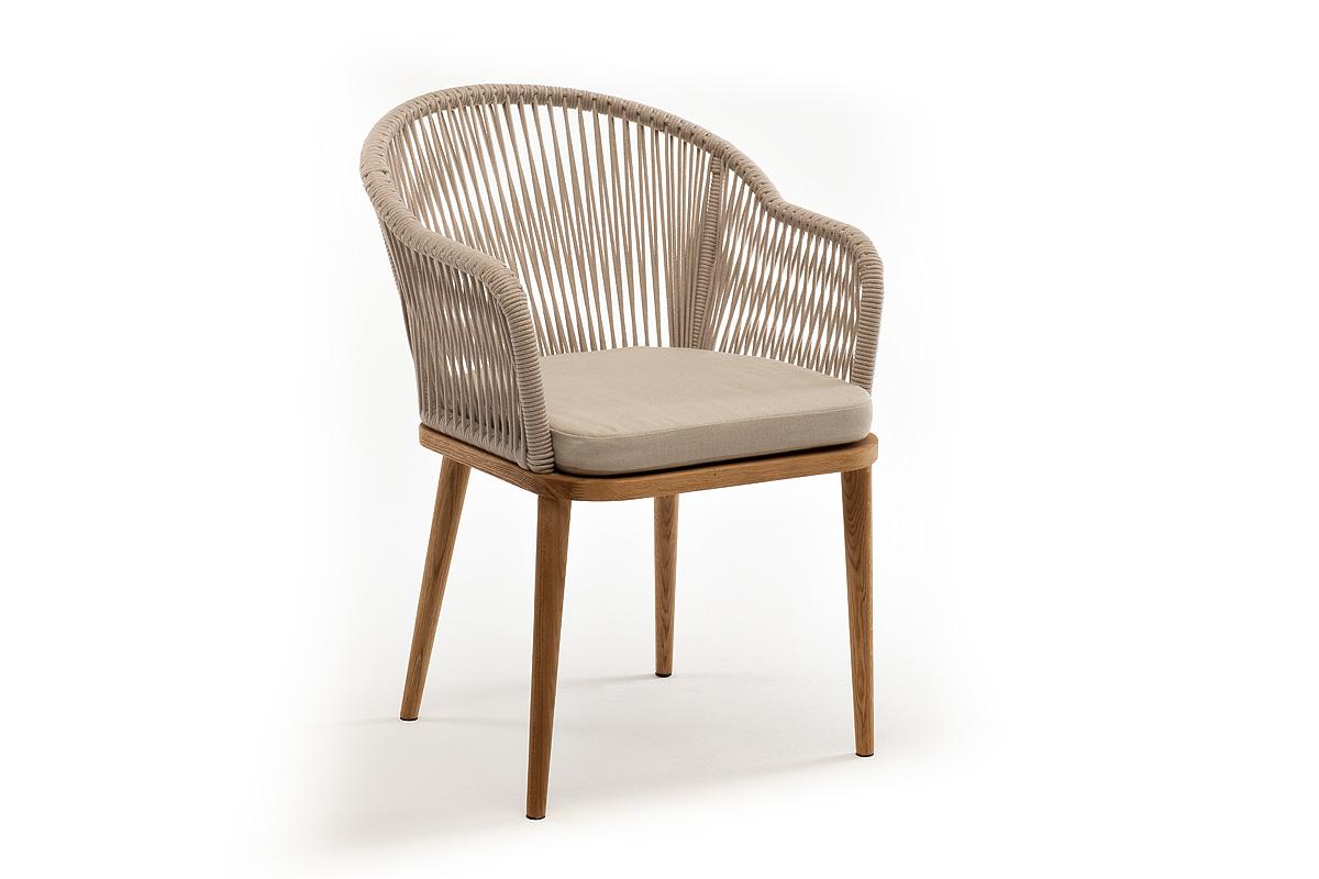 Стул 4SIS "Лион" стул плетеный из роупа, основание дуб, роуп бежевый круглый, ткань бежевая арт. LIO-CH-T001 beige(beige035)