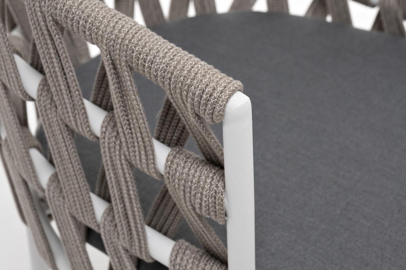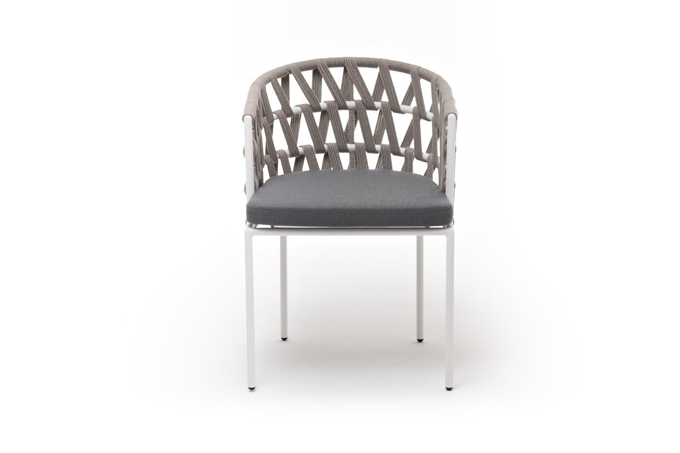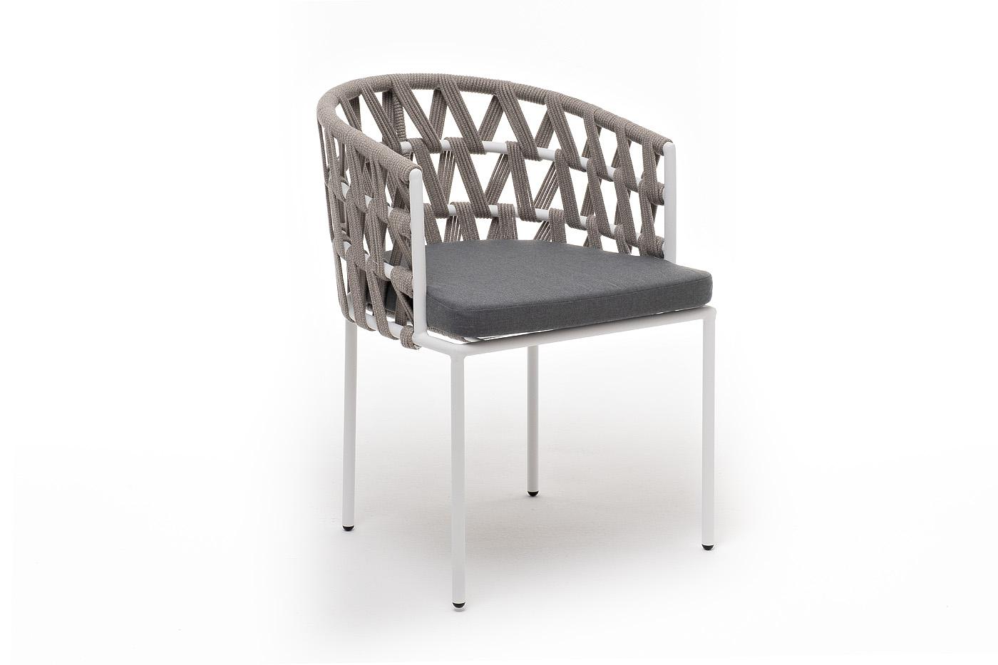 Стул 4SIS "Диего" стул плетеный из роупа, каркас из стали белый муар, роуп серый меланж круглый, ткань серая 017 арт. DIE-CH-st001 W Mua mel-grey(gray017)