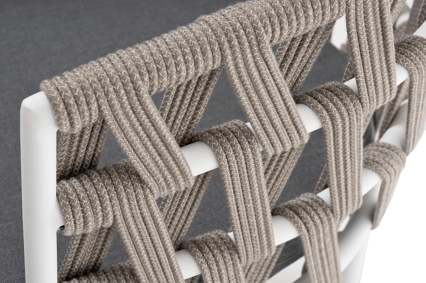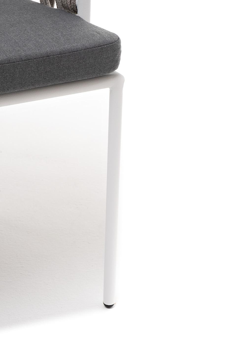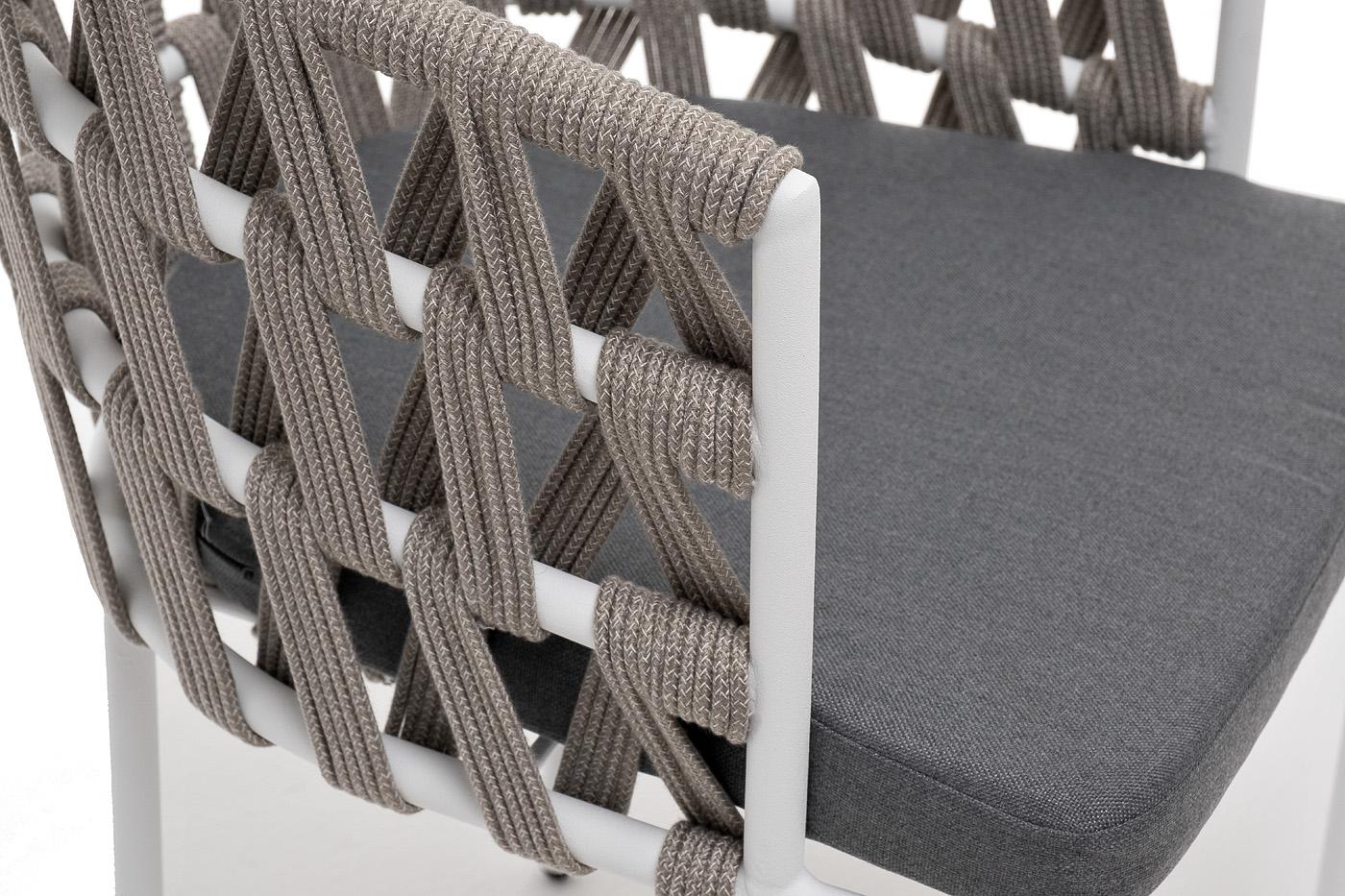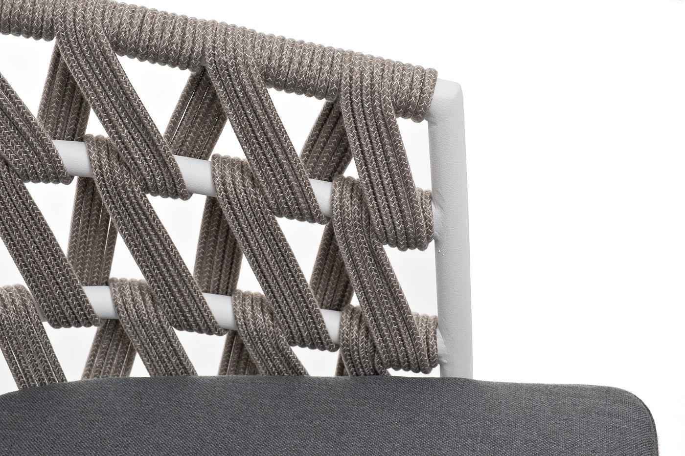 Стул 4SIS "Диего" стул плетеный из роупа, каркас из стали белый муар, роуп серый меланж круглый, ткань серая 017 арт. DIE-CH-st001 W Mua mel-grey(gray017)