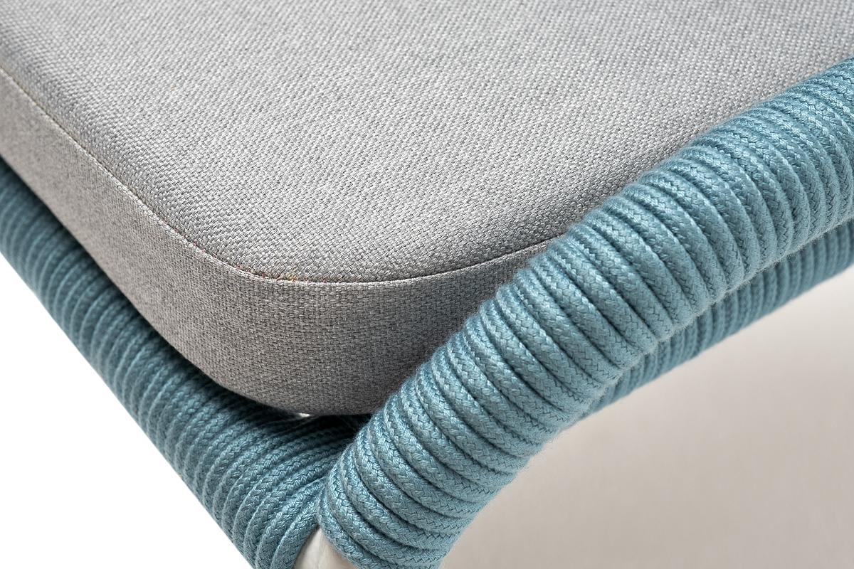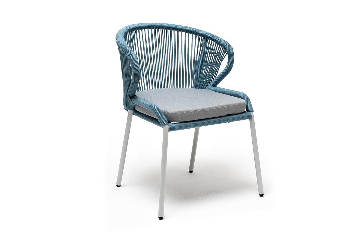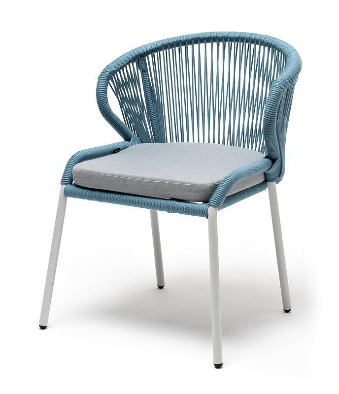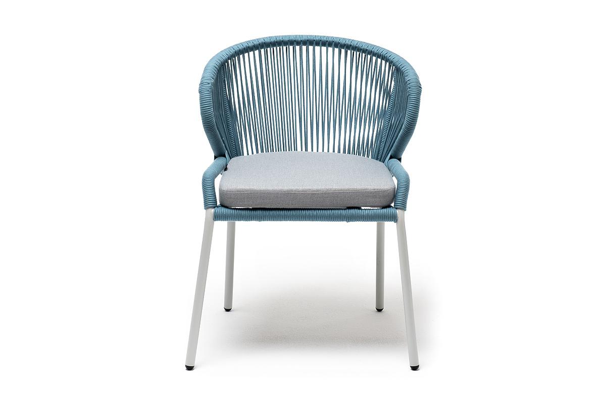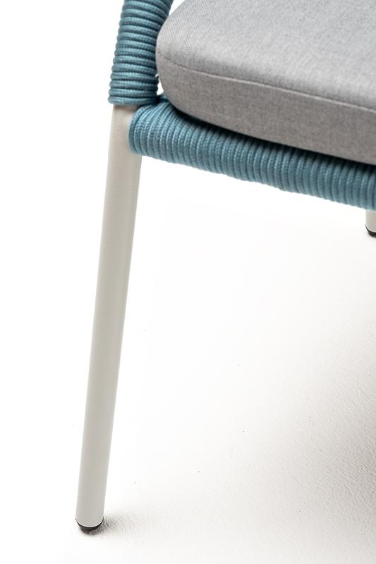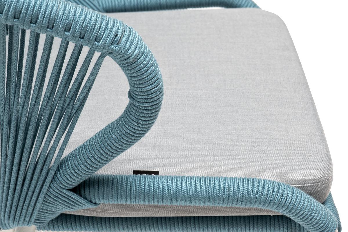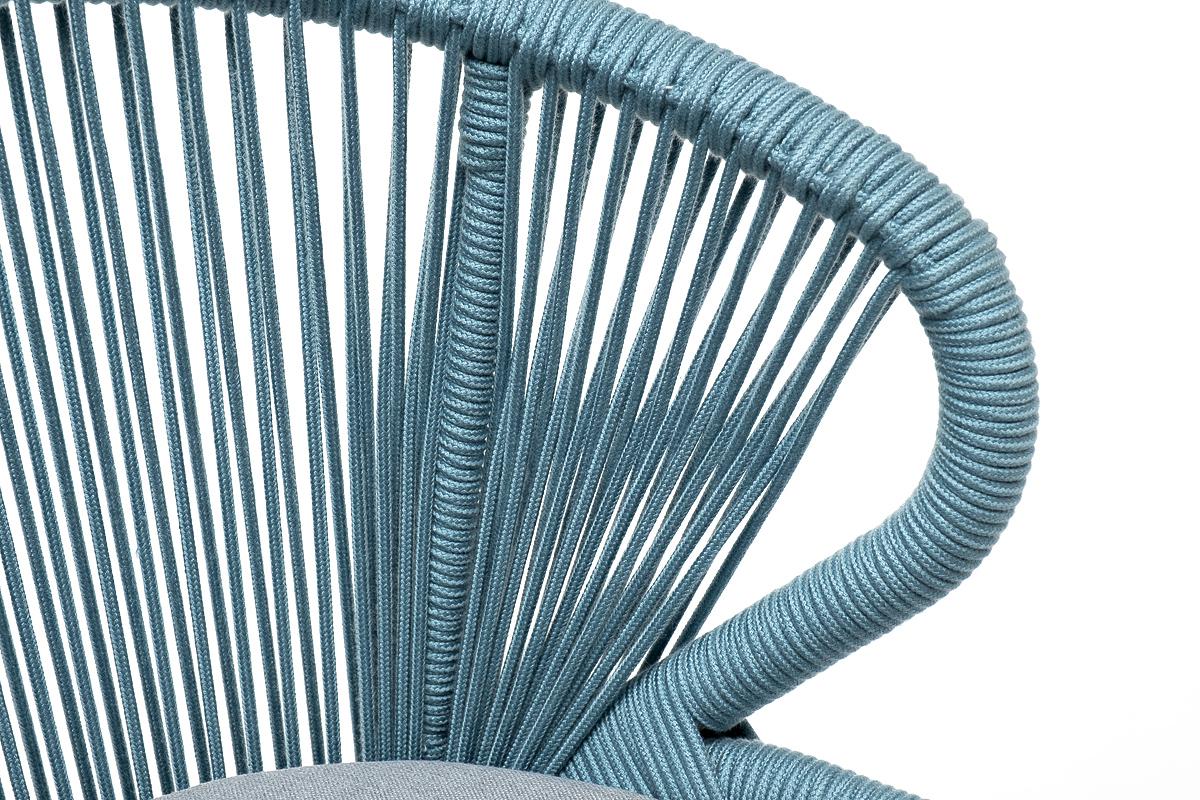 Стул 4SIS "Милан" стул плетеный из роупа, каркас алюминий светло-серый (RAL7035) муар, роуп бирюзовый круглый, ткань светло-серая арт. MIL-CH-001 RAL7035 Mua blue(H-gray)