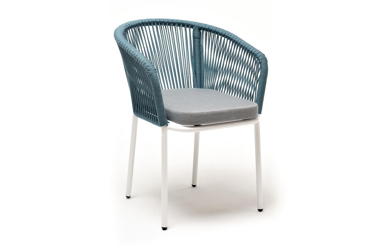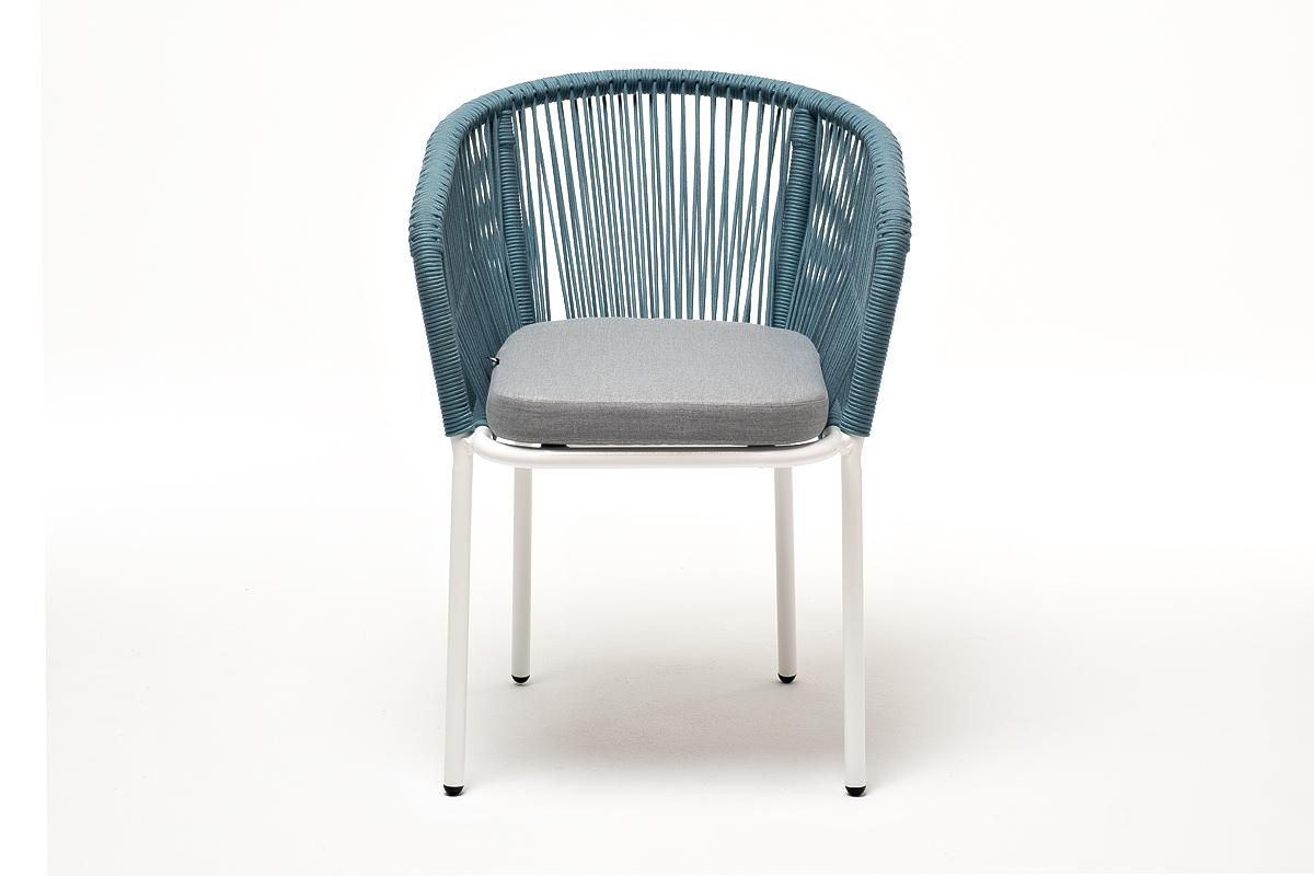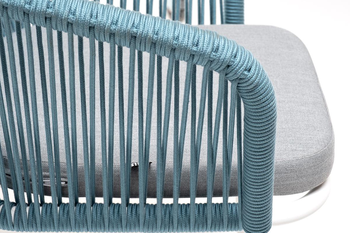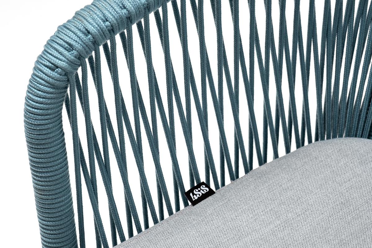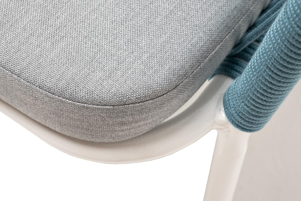 Стул 4SIS "Марсель" стул плетеный из роупа, каркас алюминий светло-серый (RAL7035) муар, роуп бирюзовый круглый, ткань светло-серая арт. MAR-CH-001 RAL7035 Mua blue(H-gray)
