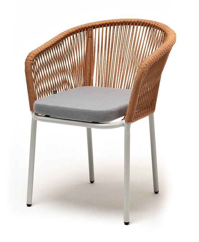 Стул 4SIS "Марсель" стул плетеный из роупа, каркас алюминий светло-серый (RAL7035) муар, роуп оранжевый меланж круглый, ткань светло-серая арт. MAR-CH-001 RAL7035 Mua mel-orange(H-gray)