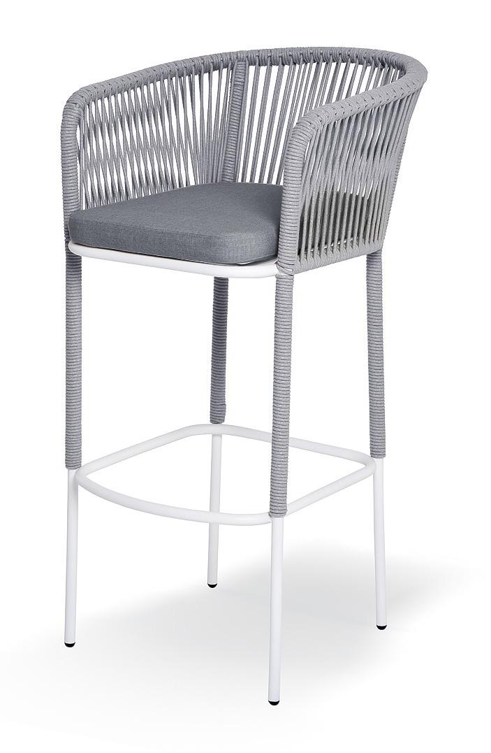 Стул 4SIS "Марсель" стул барный плетеный из роупа, каркас из стали светло-серый (RAL7035) муар, роуп светло-серый круглый, ткань светло-серая арт. MAR-BCH-st001 RAL7035 Mua H-grey(H-gray)